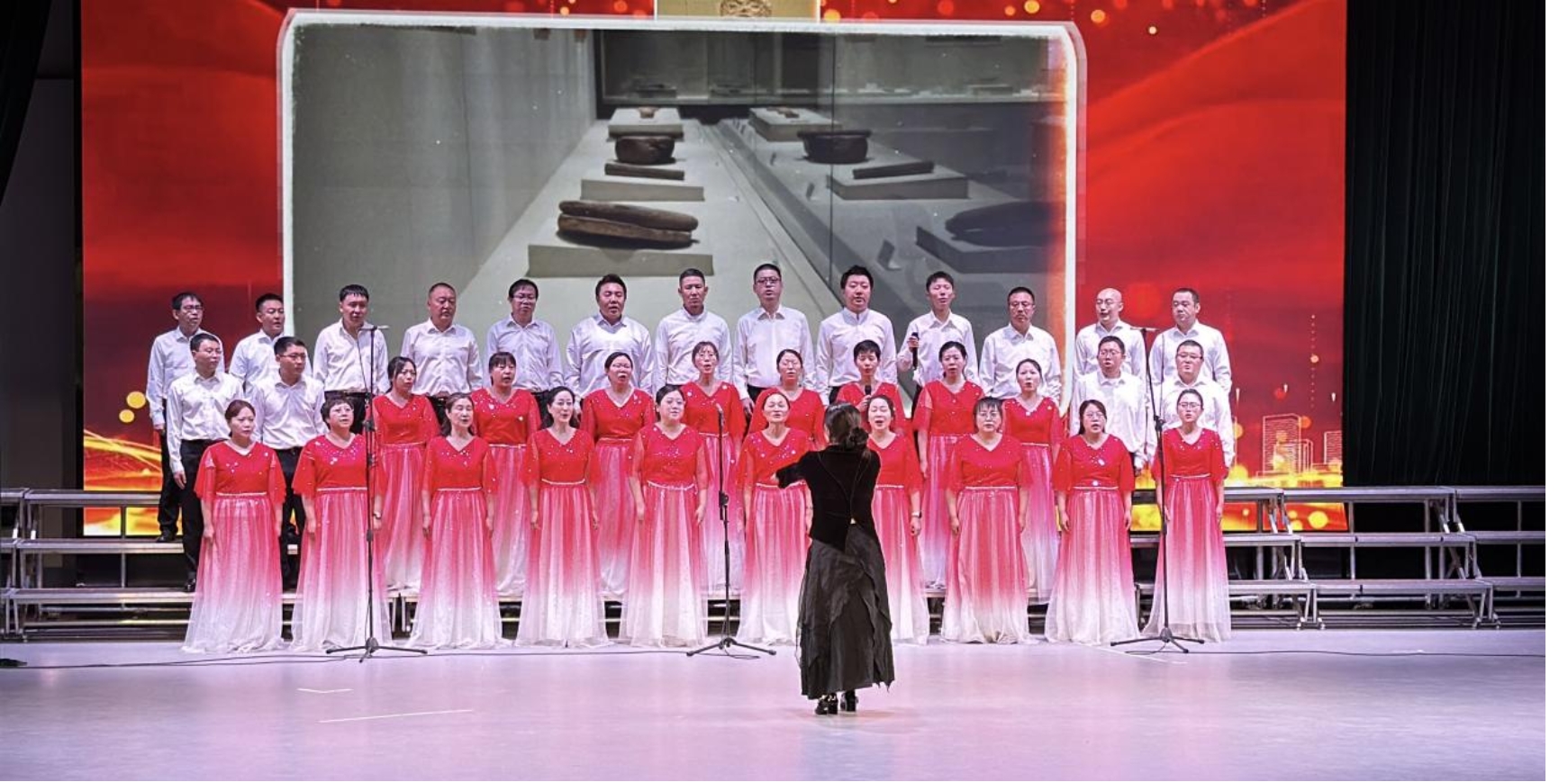 伴随着背景屏幕上呈现出的一幕幕令人心潮澎湃的往昔伟大瞬间的历史影像、饱含深刻内涵与丰富情感的人文画面,以及历史文化学院教学与专业实习实践时的精彩瞬间。教师们用默契的配合、嘹亮的歌声和真挚的情感,将两首歌曲演绎得淋漓尽致,赢得了现场观众热烈的掌声。