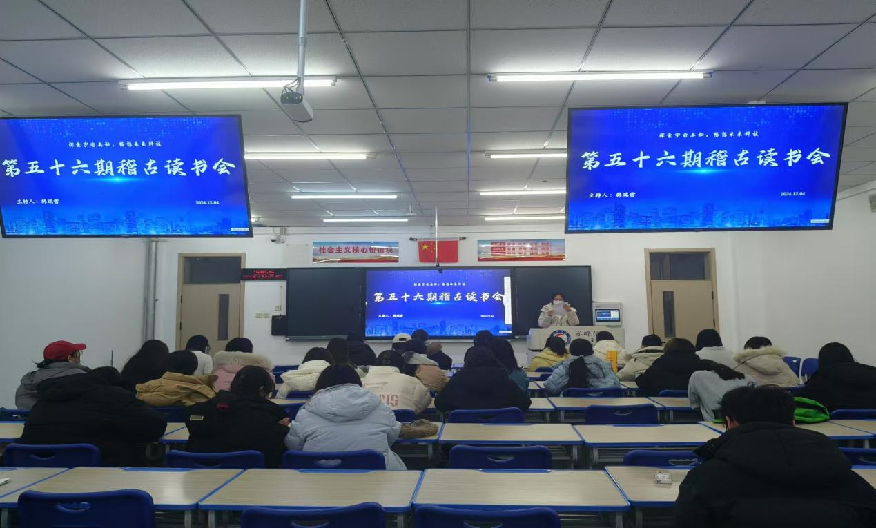以书为伴,以文会友。2024年12月4日晚,历史文化学院第五十六期稽古读书会于综合楼111室拉开帷幕。本次读书会以“探索宇宙奥秘,畅想未来科技”为主题,历史文化学院学习部举办,2023级历史学二班韩瑞雪同学主持。本次活动中共有四位同学向我们进行了分享,大家在热烈的氛围下畅所欲言。