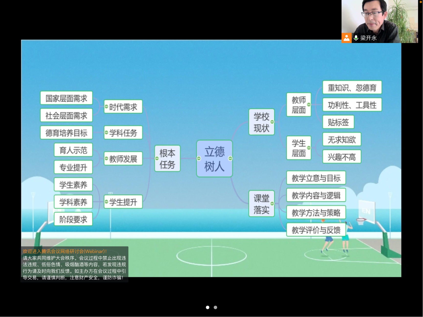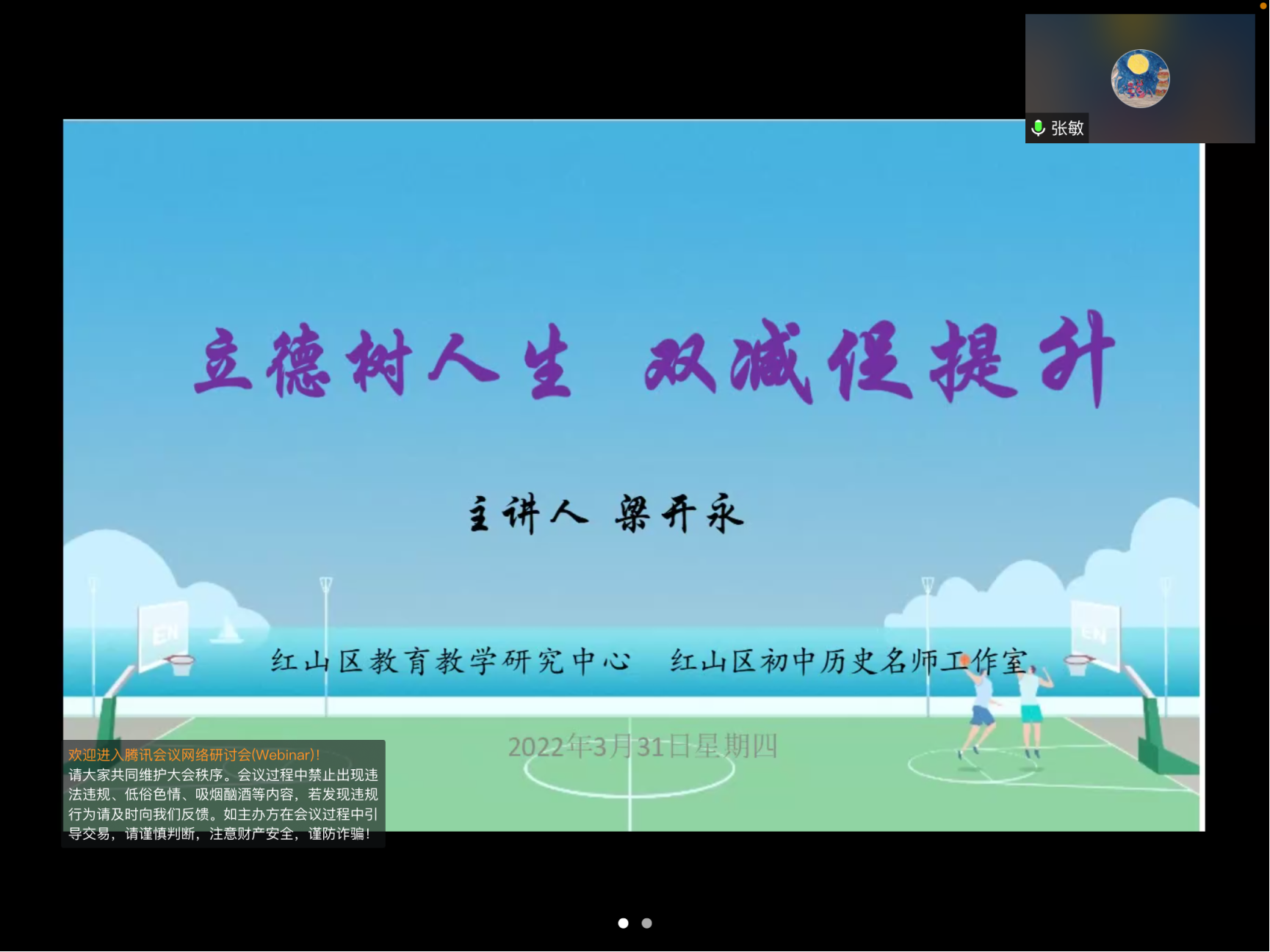 梁老师以“立德树人生,双减促提升”为题,深刻解读了“立德树人”的内涵,围绕初中历史教学落实“立德树人”现状,从教师和学生两方面进行剖析并提出建议:教育教学中要多角度、广视角、深层次地将育人元素植入学生的心里,达到以情动人、以事感人、以物化人、以言润人的作用。同时结合2021年“双减”检测试卷,从历史学科核心素养的角度对试题进行分析。此次讲座有助于学生更好地将立德树人与中学历史教学联系起来,有利于学生在以后的中学历史教学中更好的落实双减政策,对学生未来的职业生涯有重要的意义。