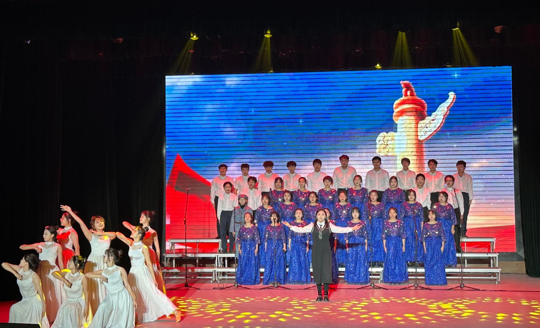 决赛中,我院合唱团用铿锵有力的歌声、斗志昂扬的精神面貌和赏心悦目的舞蹈,演绎《我的祖国》,唱响志愿军战士的爱国之情、对家乡的赞美之情和英雄主义气概。歌词情真意切、直白朴实,旋律婉转动听、令人陶醉,深情抒发了对党、对祖国的深情热爱,表达了中国人民不断开拓进取、坚持奋斗、不惧险阻的精神,不仅给观众们带来了一场视听盛宴,也获得了评委们的一致好评,最终我院合唱团以97.978分的成绩荣获三等奖。