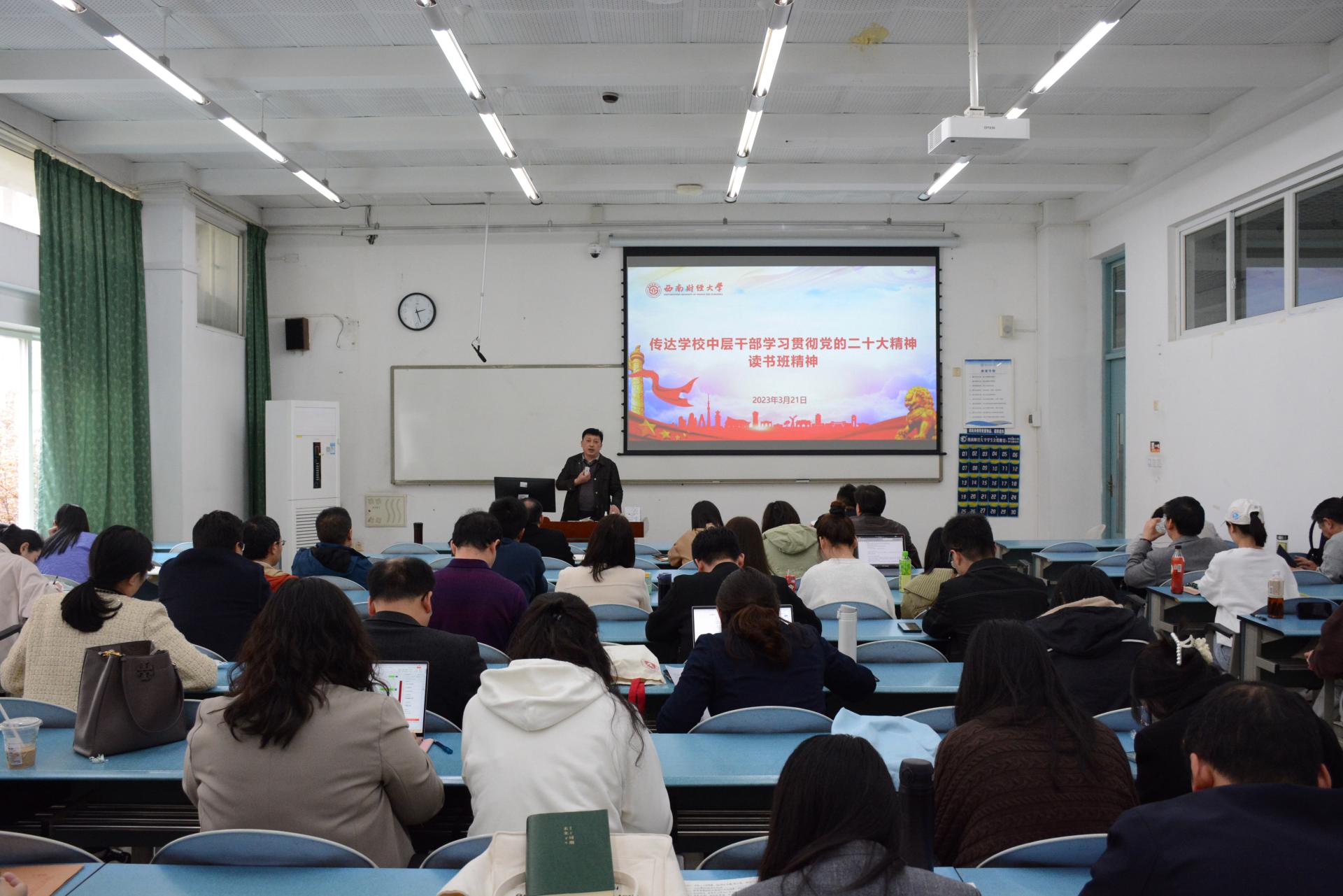 2023年3月21日下午,5357cc拉斯维加斯在颐徳楼H208组织召开学院全体教职工大会。会议传达学校中层干部“学习贯彻党的二十大精神”读书班精神,开展师德师风负面案例警示教育,传达学校2023年全面从严治党工作会议精神,通报教研室主任换届结果,通报学院2022年度民主生活会情况,开展教职工职业生涯规划动员,部署学院近期各项工作。院长唐晓勇主持会议。