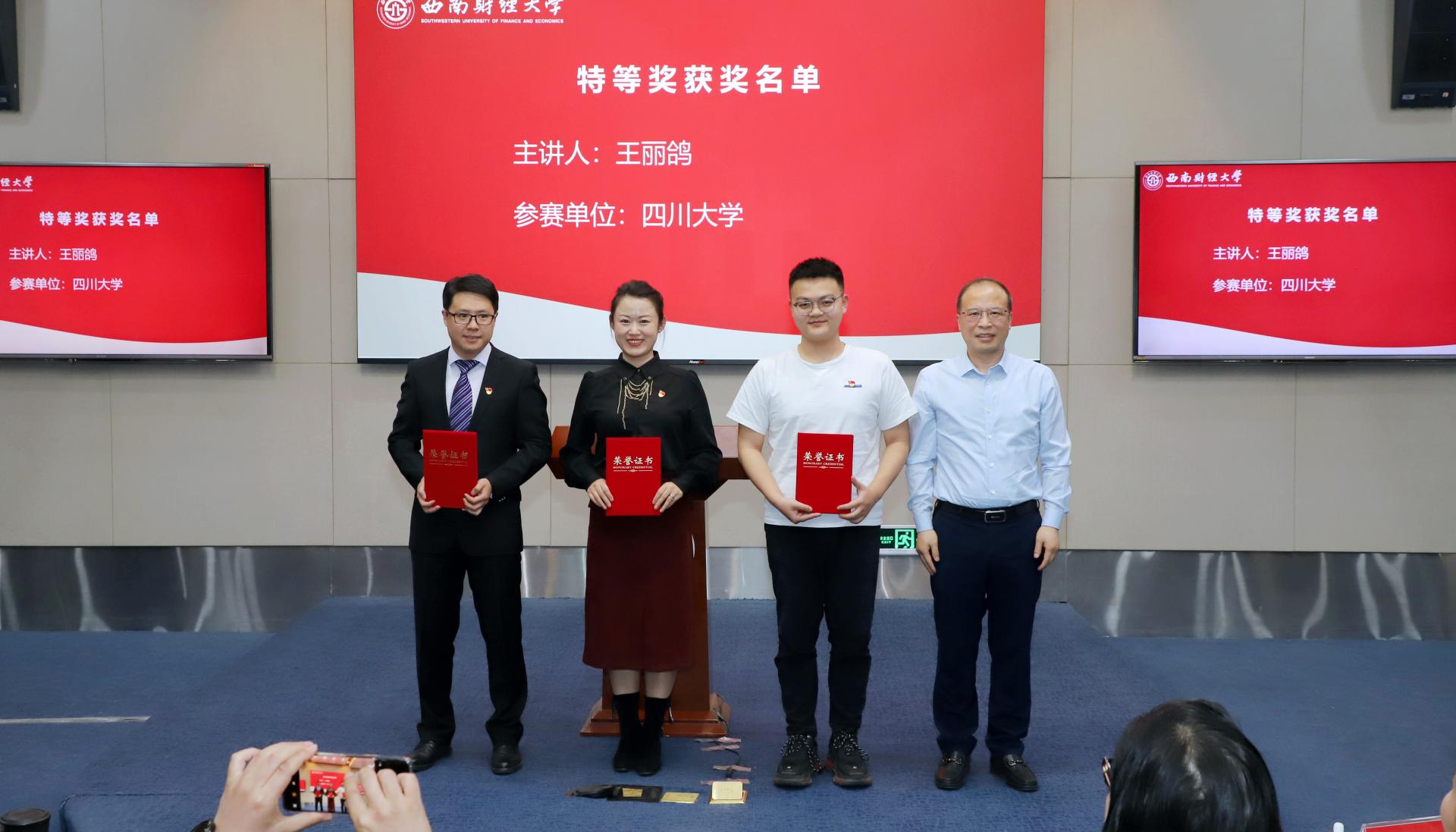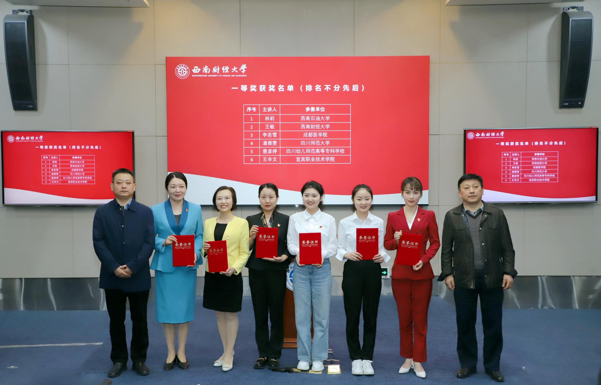 经过激烈的角逐,四川大学王丽鸽团队获特等奖,西南石油大学林莉、西南财经大学王敏、成都医学院李若雪、四川师范大学潘雅雯、四川幼儿师范高等专科学校唐彦婷、宜宾职业技术学院王辛文6名选手获一等奖,四川旅游学院王瑞、四川民族学院董芝伶团队等16名选手(含团队)获二等奖。选拔赛还评出了优秀组织单位7家,三等奖若干。