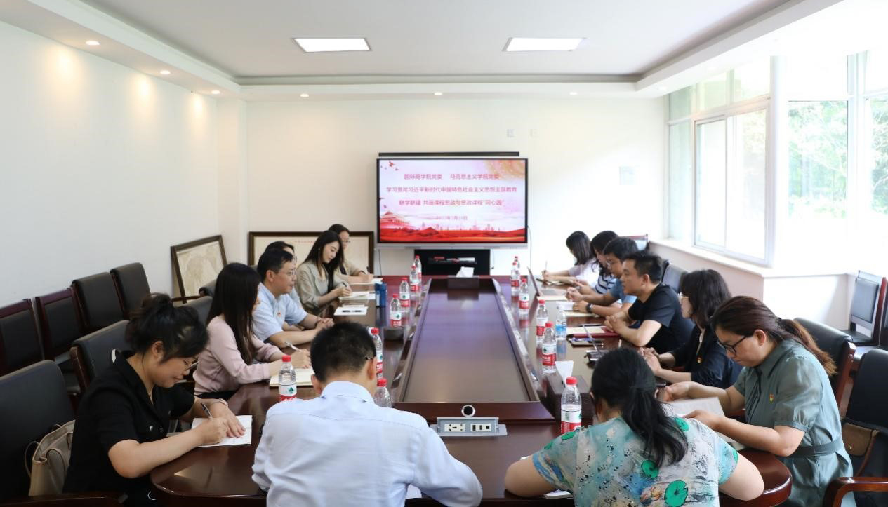 国际商学院党委书记张剑波带领与会人员学习《习近平关于调查研究论述摘编》,强调要推动学习贯彻习近平新时代中国特色社会主义思想主题教育走深走实,学习好把握好运用好习近平新时代中国特色社会主义思想的世界观和方法论,推动两个学院资源共享、优势互补、经验互鉴,共同画好课程思政与思政课程“同心圆”。