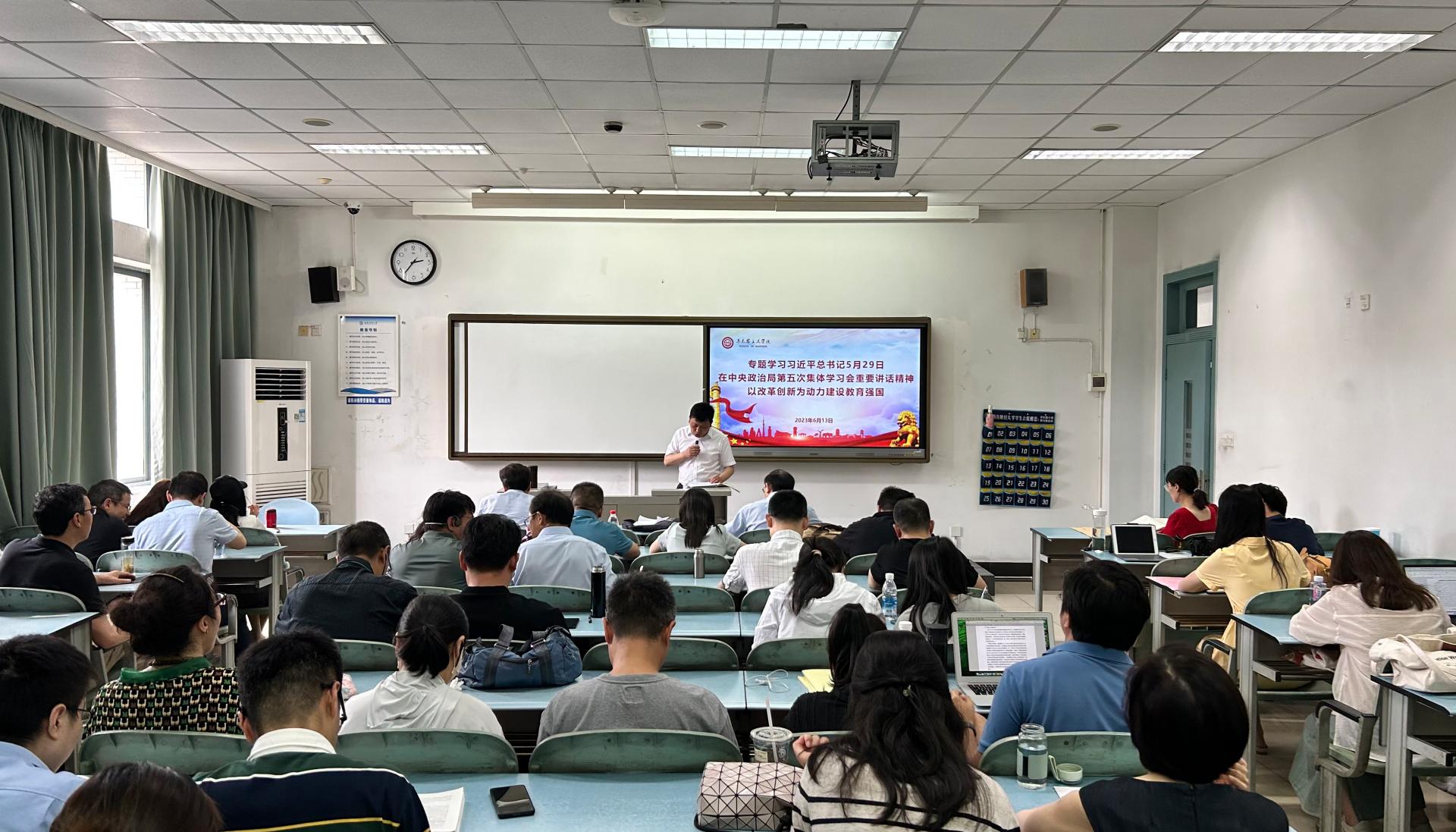 会上,学院教师充分交流发言,认真学习领悟习近平总书记在中共中央政治局第五次集体学习时的重要讲话精神,引发热烈反响。
