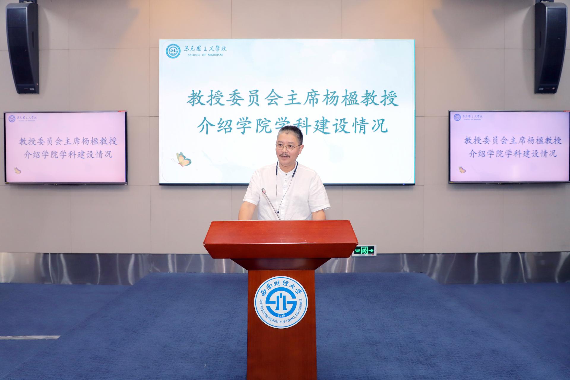 学院教授委员会主席杨楹教授介绍了学院的师资力量和学科建设情况,希望同学们在导师的带领下取得优秀的学术成果。学院副院长吴玉平教授介绍了学院研究生教学工作开展情况,勉励同学们明确研究生阶段的学习目标,做好学习规划;学院副院长刘世强教授介绍了研究生科研工作,期望同学们加强理论学习,注重奠定扎实的专业基础;学院党委副书记钟芸莹介绍了学院学生管理服务的总体情况和特色项目,希望同学们在“四自”中实现全面发展。随后,杨楹、刘世强、段江波、李春梅、胡建等教授对各自学科点进行了介绍。高年级学生代表、研究生会主席黄江云和新生代表周鑫分别发言。