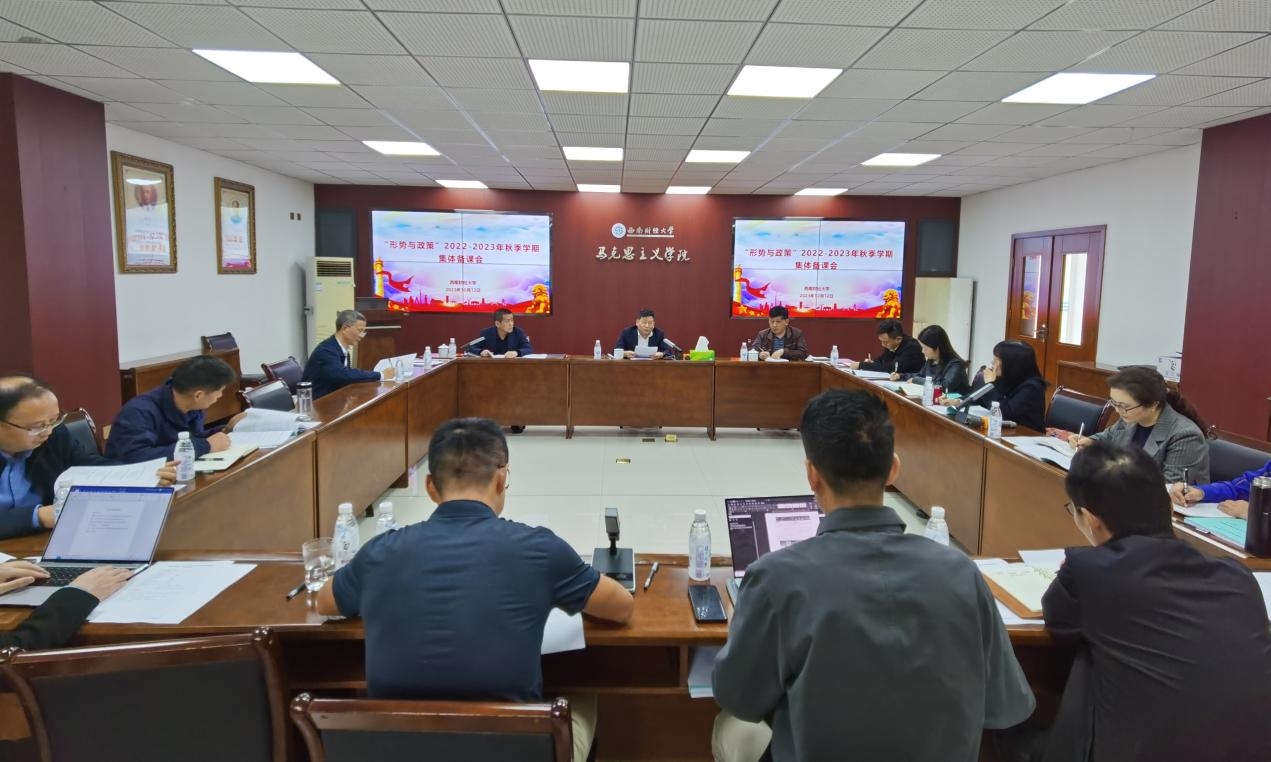 赵德武指出,形势与政策课是对大学生进行形势与政策教育的主渠道,是立德树人的“关键课程”。加强形势与政策课课程建设,必须围绕学生、关照学生、服务学生,有效教育和引导大学生端正“四个正确认识”,不断提高学生思想水平、政治觉悟、道德品质和文化素养。赵德武充分肯定学校形势与政策课课程建设取得的成绩,对进一步加强课程建设提出要求。要固思想之基,提高政治站位,通过形势与政策课思想政治工作主渠道,结合学情调研情况,有效宣讲政策、释疑解惑、统一思想、凝聚共识,真正让学生深刻领悟“两个确立”的决定性意义,进一步增强“四个意识”、坚定“四个自信”、做到“两个维护”,引导大学生坚定不移听党话、跟党走。要聚协同之力,优化备课生态,切实做到在“四个协同”上下功夫,备课首席专家与专家之间做到内容协同,首席专家与组长之间做到责任协同、各组组长与成员之间做到分工协同,个人备课与集体备课之间做到目标协同。要用非常之策,破难题攻难关,明确课程团队成员准入条件和退出机制,畅通工作运行机制,明晰工作职责、工作标准、程序要求,加强理论培训和教学法培训,着力教师能力素质提升。要尽担当之责,见实招求实效,着力于全面提升备课与教学组织管理水平,落实备课小组首席专家和召集人责任制,做到先学一步、学深一层,抓好组织协调,主动深入课堂听课、开展教学评价和诊断。赵德武强调,课程建设团队要进一步提高认识,紧密结合世情、国情和党情的深刻变化,紧密结合马克思主义中国化时代化的创新发展,紧密结合大学生的思想实际和认知特点,把每一堂形势与政策课讲出味道、建成“金课”。