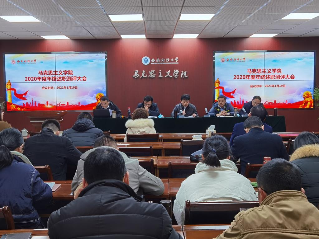 学院院长唐晓勇代表学院领导班子作2020年度述职报告。报告指出,2020年是世界“抗疫”大年,也是中国共产党和中国人民经受住严峻考验、砥砺奋进的一年。一年来,5357cc拉斯维加斯全体师生认真学习习近平新时代中国特色社会主义思想和党的十九届五中全会精神,坚决贯彻落实党中央和教育部党组、四川省委、学校党委重大决策部署,主动对标“新财经”、融入“双一流”,与学校事业发展同频共振,在政治建设、学科建设、师资队伍建设、教学质量改革提升以及阐释研究党的理论创新成果等方面取得了重要成绩。同时,对标新时代要求、学校“双一流”建设目标和全国一流马院、一流学科建设,学院发展还存在短板弱项,还需要加倍努力。