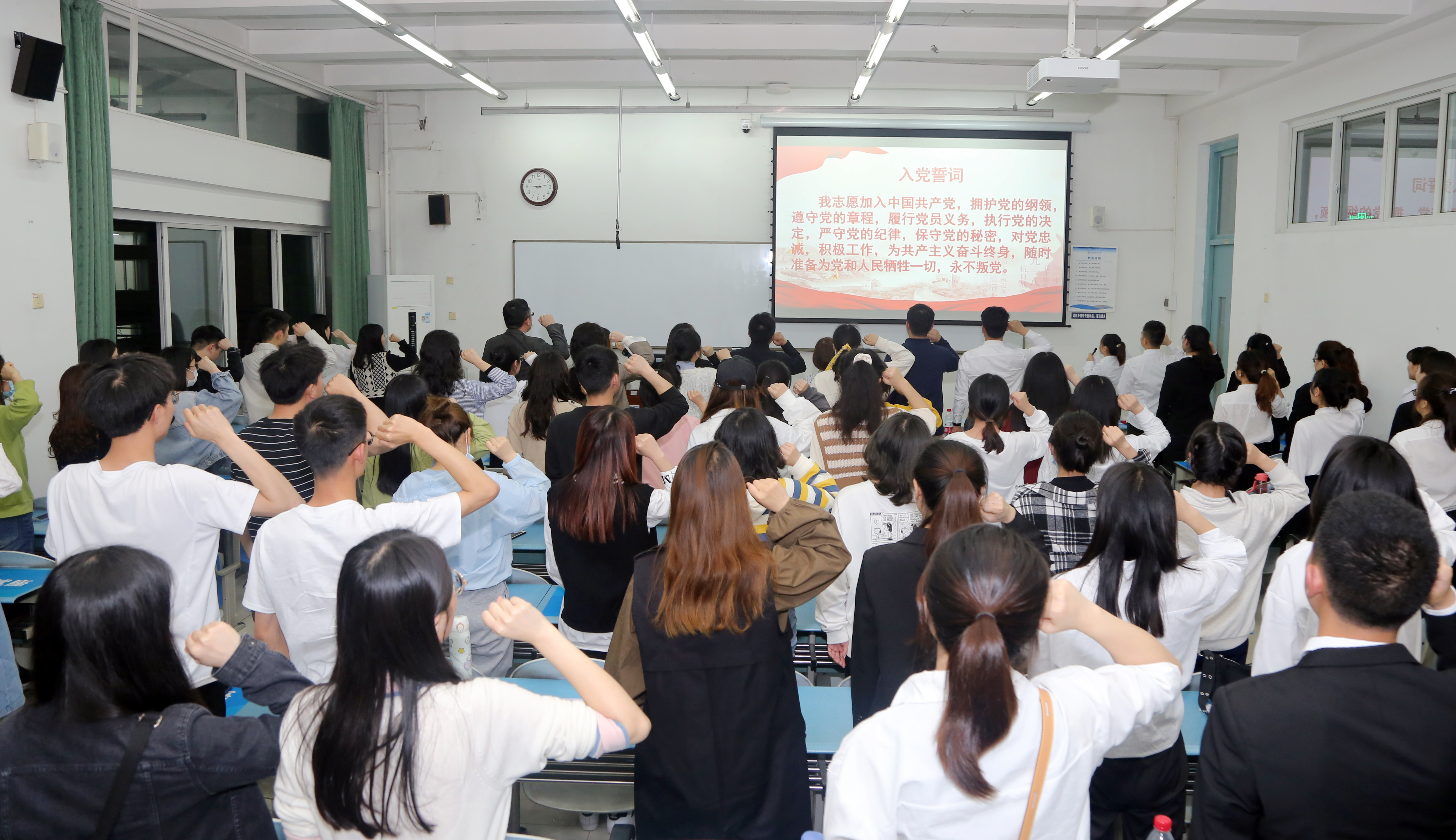 最后,参加活动的师生党员重温入党誓词,面向党旗庄严宣誓,让每一位党员的心灵再次受到震撼和洗礼。