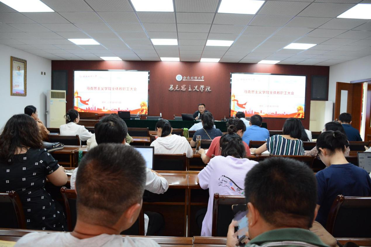副院长吴玉平详细传达了卓志题为《凝心整改聚力发展全力以赴做好秋季学期各项工作》的专题报告,对秋季学期各项工作任务特别是思政课建设作出具体安排。他着重阐述了国家新一轮“双一流”建设主要要求,回顾总结了学校首轮“双一流”建设概况及评价,传达了学校新一轮“双一流”建设工作和推进新时代教育评价改革工作的进展与安排。