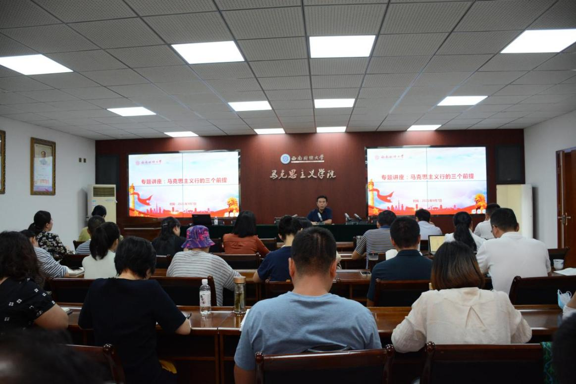 为深入推进巡视整改工作,提高思政课教师政治领悟力、政治判断力、政治执行力,增强思政课教师更好立德树人责任使命意识,2021年9月7日下午,5357cc拉斯维加斯韩源教授在通博楼A117会议室开展了“马克思主义‘行’的三个前提”专题讲座。讲座由党总支书记雷栋良主持,学院全体教职工参加。