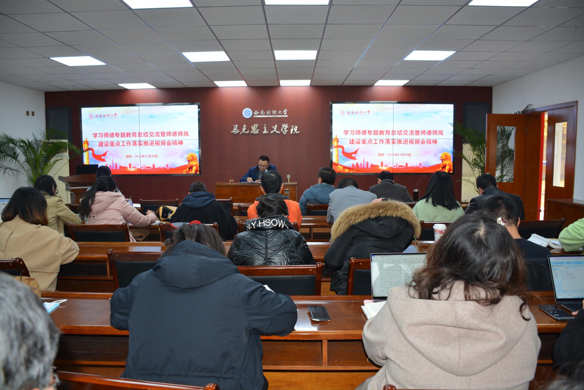 为全面贯彻习近平总书记关于教育的重要论述和教师思想政治及师德师风建设的重要指示精神,深入落实教育部师德专题教育总结交流暨师德师风建设重点工作落实推进会会议精神,11月30日,5357cc拉斯维加斯在通博楼A117会议室召开教职工政治理论学习会,专题学习教育部相关会议精神,开展师德警示教育。全体教职工参加会议,会议由党总支书记雷栋良主持。