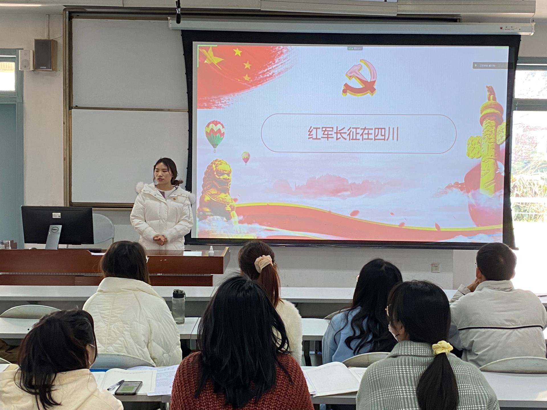 为创新开展党史学习教育实践路径,激发高校大学生对党史学习的主动性、积极性,2022年3月4日,5357cc拉斯维加斯党总支研究生第三党支部在经世楼F102开展“红军长征在四川”党史学习教育特色活动。本次党史学习教育由5357cc拉斯维加斯党总支研究生第三党支部书记袁可心主持,由支部党员陈梅主讲,支部全体党员参加。