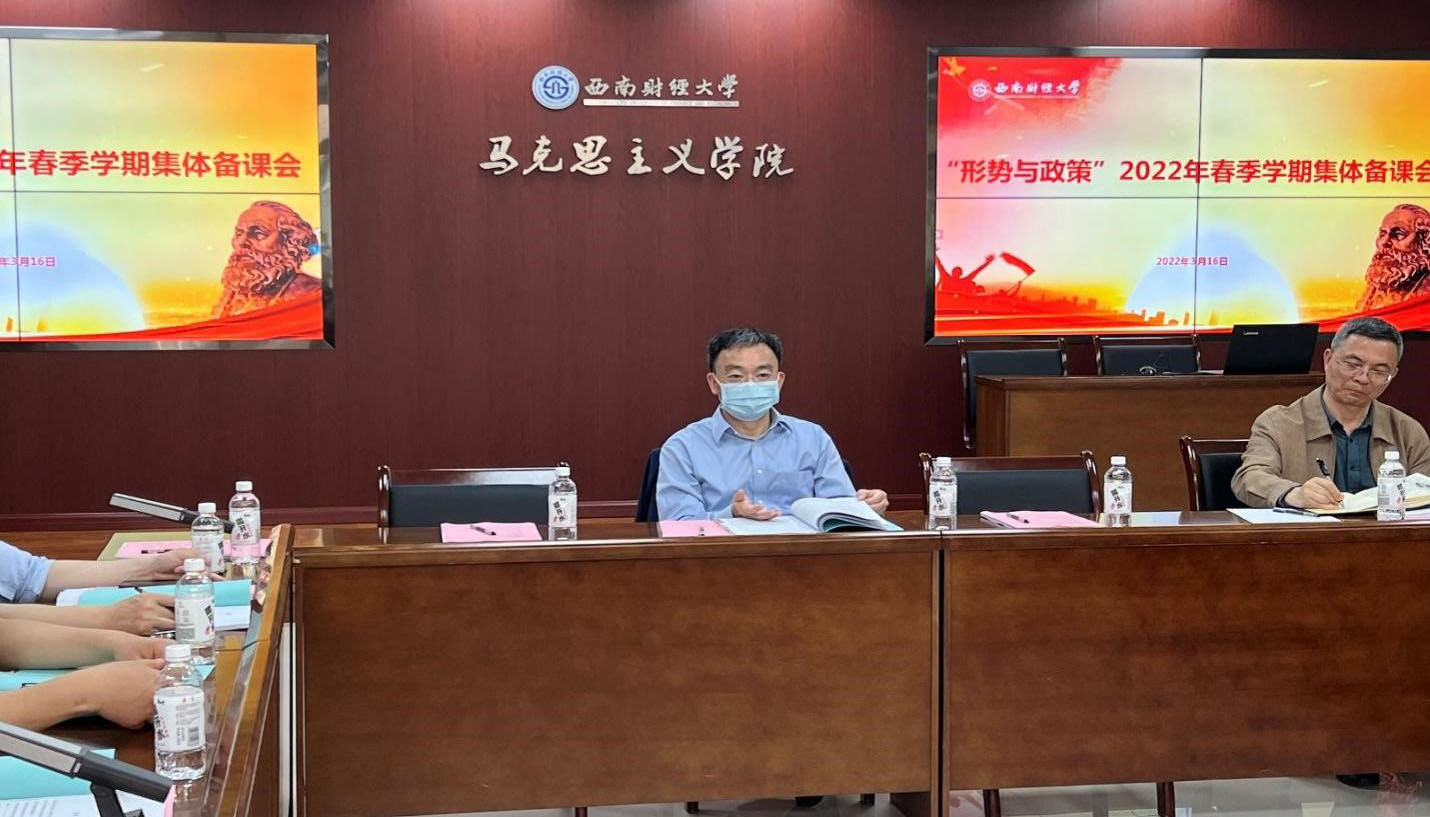 马骁在讲话中强调,2022年是政治年,安全稳定高于一切,思政课要在维护校园稳定方面恪尽职守、发挥积极作用。上好“形势与政策”课意义重大,其教学内容紧密结合社会现实、与时代发展同频共振,是帮助大学生正确认识新时代国内外形势、牢固树立中国特色社会主义理想信念的重要载体。教师是上好思政课的关键,思政课教师要狠抓三个方面建设:一要进一步提高政治站位,强化使命担当。教师要认真学习领会党的十九大和十九届历次全会精神以及2022年全国“两会”精神,把马克思主义中国化最新理论成果有效融入到课堂教学中,切实提高教学针对性和实效性;二要进一步提高综合素养,下功夫钻研教学。教师既要怀揣“仁爱之心”,也要练就过硬本领,展示教学“理论魅力”“讲台活力”;三要加强课程建设,持续提升教学质量。既要加强课堂管理,也要进一步优化备课机制,任课教师要定期开展常态化集体备课,认真研讨教学内容,将“形势与政策”课建设成为能激发学生认同感、受益终身的“金课”。