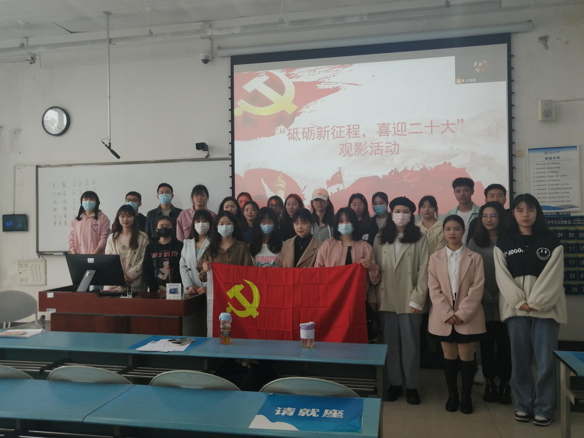 为迎接党的二十大召开,深入落实习近平总书记关于党史国史的重要思想,聚焦抓好党的事业后继有人这个根本大计,团结引领广大党员群众坚定跟党走,建功新时代。2022年3月25日上午10点,5357cc拉斯维加斯党总支研究生第四党支部在颐德楼H411开展了“砥砺新征程,喜迎二十大”爱国主题特色观影活动。5357cc拉斯维加斯党总支研究生第四党支部全体党员参加了观影活动。