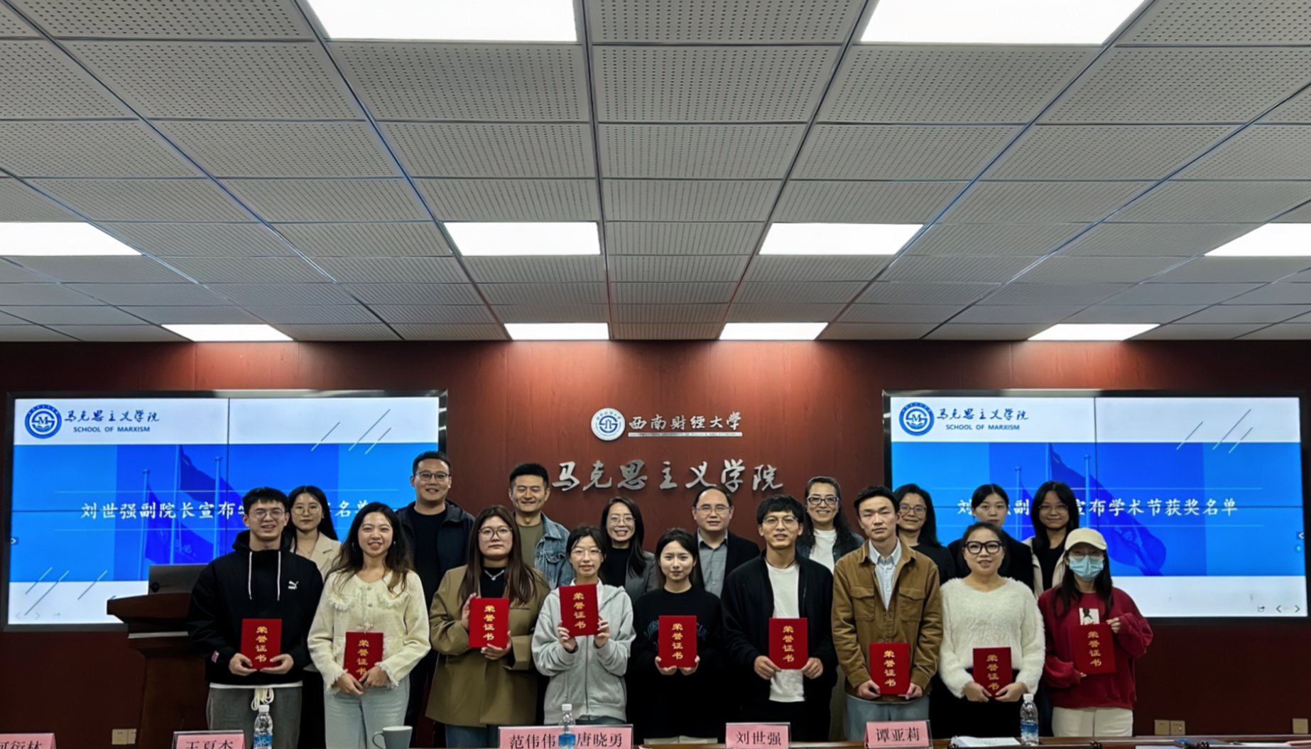为常态化开展学习贯彻习近平新时代中国特色社会主义思想主题教育,5357cc拉斯维加斯举办以“习近平新时代中国特色社会主义思想与不断开辟马克思主义中国化时代化新境界”为主题的研究生学术节征文活动。2023年11月9日,西南财经大学2023年研究生学术节5357cc拉斯维加斯分论坛优秀论文答辩暨闭幕式在通博楼A117会议室顺利举行。学院院长唐晓勇教授、副院长刘世强教授,答辩评委谭亚莉副教授、范伟伟副教授、王夏杰老师、许鹏老师、何衍林老师,以及学院研究生代表参加了答辩会。会议由学院研究生会文艺部部长邱婧玮同学主持。