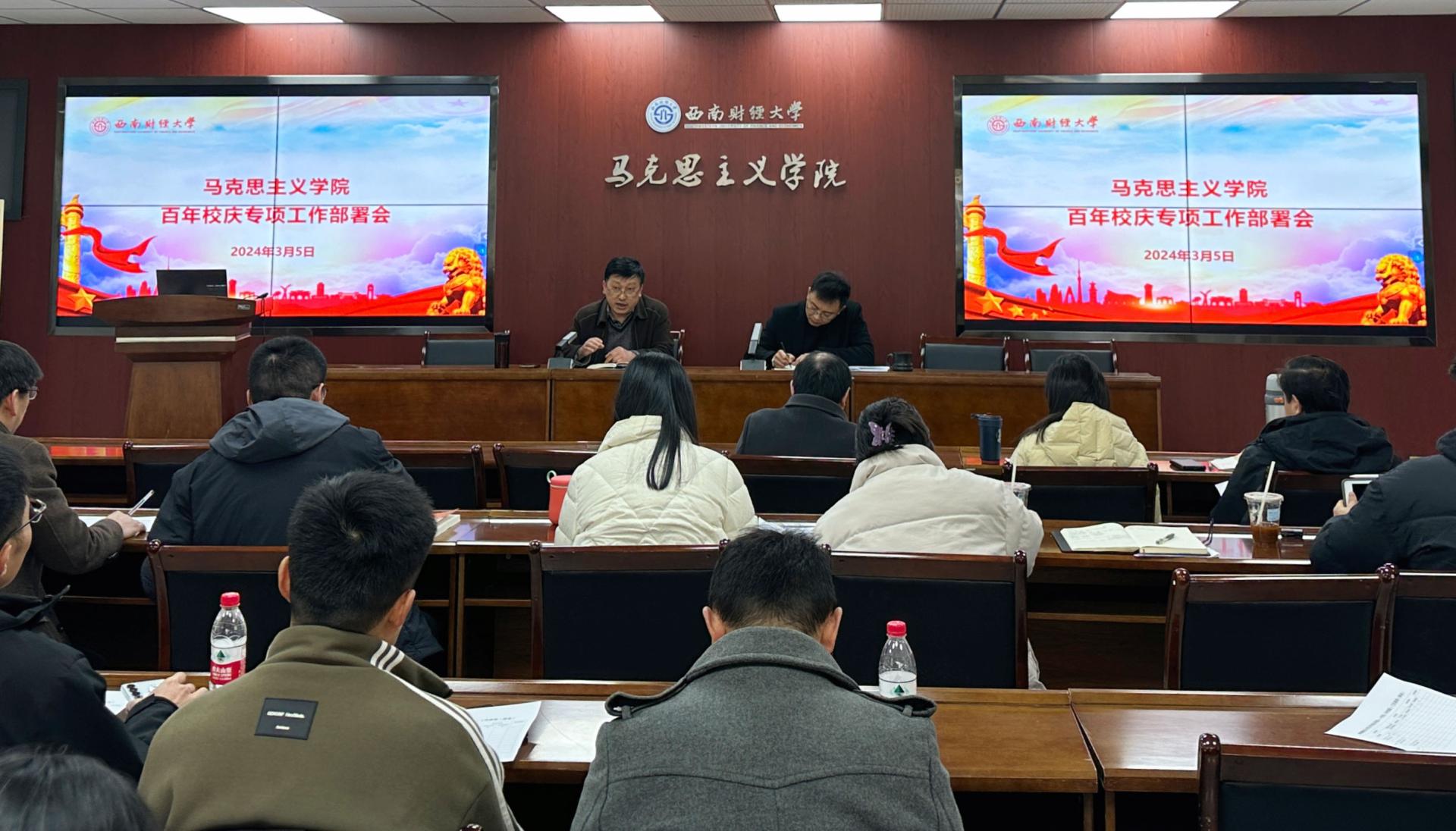 唐晓勇首先传达了学校3月1日召开的百年校庆筹备学院(研究院)工作推进会精神。他指出,办好学校百年校庆意义重大、责任重大,2024年是百年校庆筹备全力冲刺之年,要切实扛起主体责任,以强烈的使命感紧迫感全面落实学校党委决策部署;要团结奋斗敢为善为,紧扣“强国建设 西财担当”主题,落实好“发展校庆、学术校庆、校友校庆、文化校庆”各项任务目标;要突出重点把握关键,深刻把握“百年校庆”马院何为、马院院庆个人何为,以主任翁精神扎实推进落实百年校庆筹备各项工作。