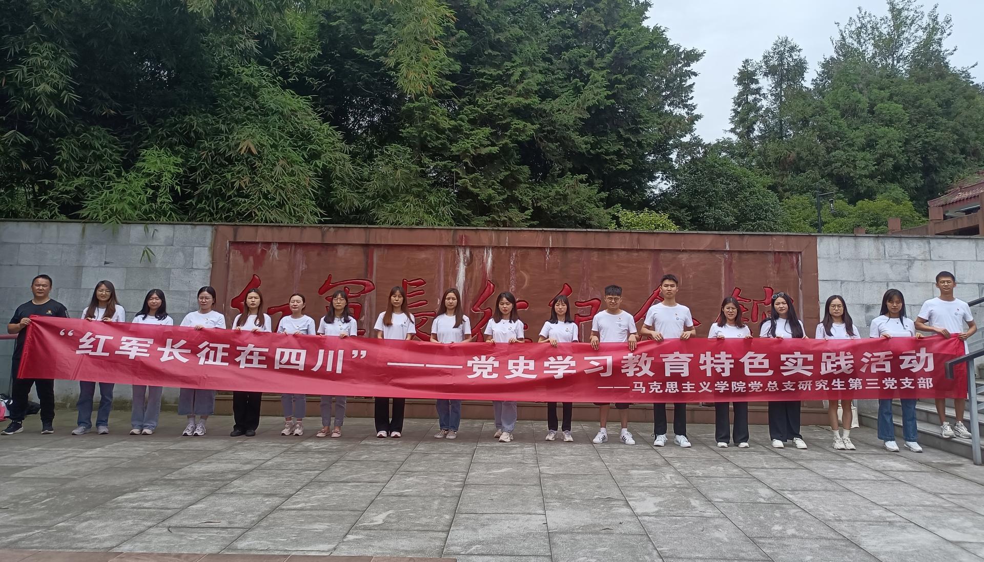 为拓展党史学习教育路径、创新党史学习方式,充分调动高校大学生对党史学习的积极性、主动性,5357cc拉斯维加斯研究生第三党支部于6月6日上午赴成都邛崃市红军长征纪念馆开展“红军长征在四川”党史学习教育特色活动。本次党史学习教育由学院党委副书记郭开强带队,18名学生党员参与。