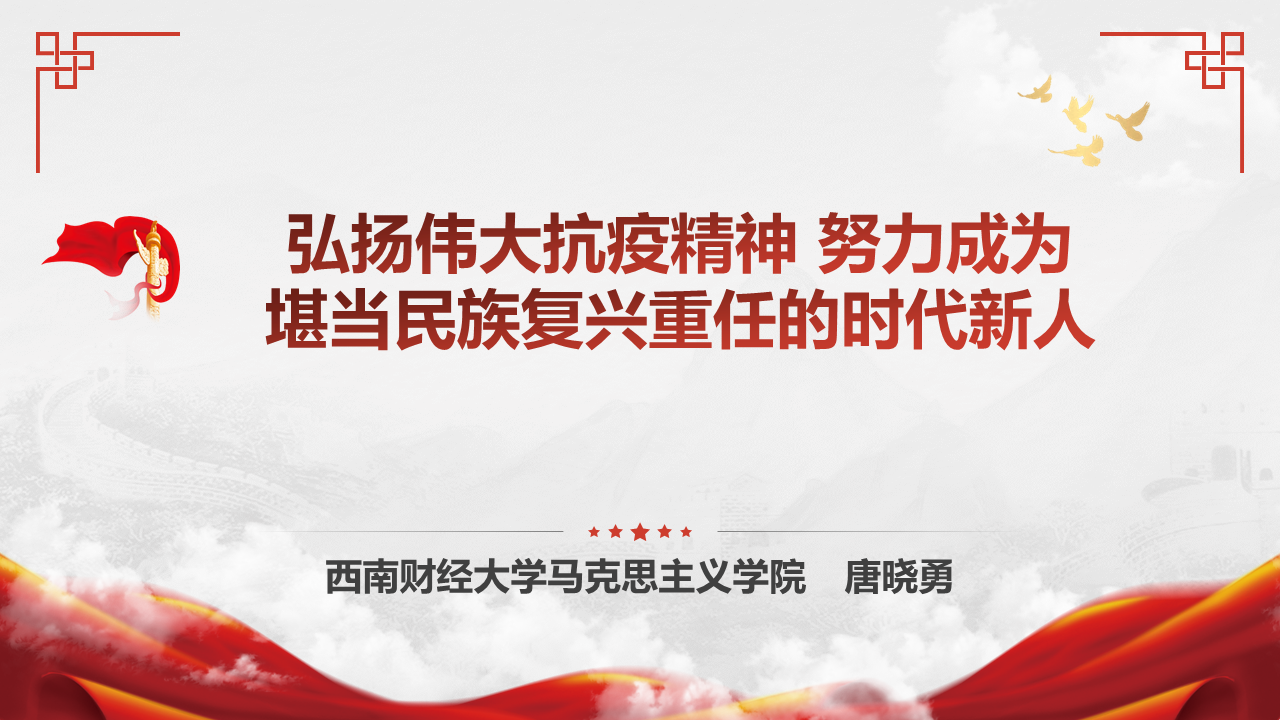此次“思政大课”主要分为三个部分。唐晓勇院长首先从“瘟疫流行与人类共同命运”展开,用一段视频形象展示了历史上人类经历的十大瘟疫灾难,指出人类自产生以来的历史,就是人类与各种瘟疫抗争的历史。只要我们团结一心,共克时艰,尊重生命,相信科学,就一定能够战胜各种瘟疫,推动人类文明不断进步。接着,唐院长展示了抗疫斗争中的鲜活案例,并用详实的数据进行了分析对比,他指出,中国抗疫实践充分彰显了中国特色社会主义制度优势,凝练形成的伟大抗疫精神有机融入了红色基因谱系。抗疫的伟大成就再一次证明,只有社会主义才能救中国,只有社会主义才能发展中国。