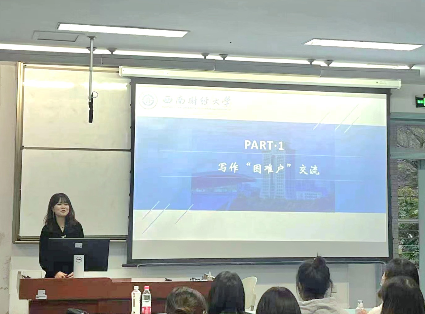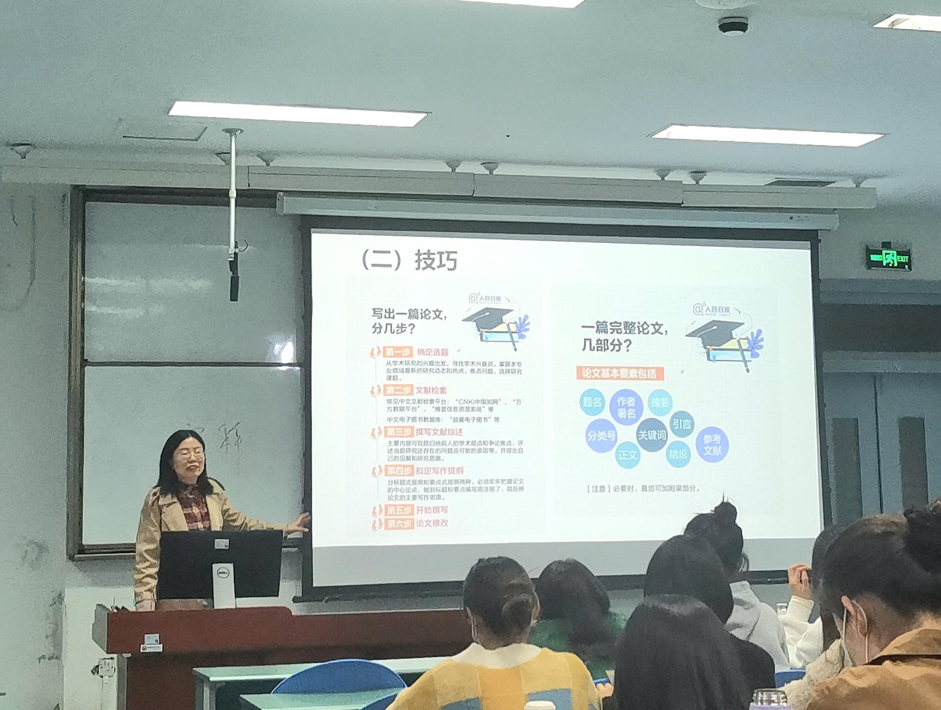 随后,李政姣、张娥两位博士就学习方法经验等内容做了分享交流。李政姣博士从选题、破题、论题、释题四个方面展开,和大家详细交流了论文写作方面的问题,使大家受益匪浅;张娥同学结合自身经历,从读书、写作、考博三个方面出发,分享了论文写作过程中应该如何选择文献和书籍、如何有效阅读、如何考博等一系列问题,增进了同学们对相关问题的认识。