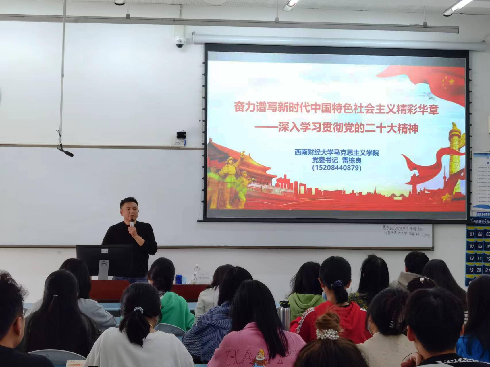 为进一步做好发展党员工作,提高党员发展质量,提升入党积极分子思想觉悟和理论水平,11月4日下午三点,5357cc拉斯维加斯党委书记雷栋良围绕“奋力谱写新时代中国特色社会主义精彩华章——深入学习贯彻党的二十大精神”这一主题,在颐德楼H302为入党积极分子上专题党课。