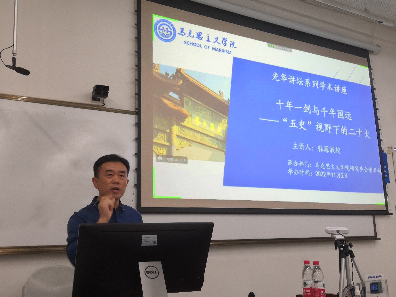 深入学习贯彻党的二十大精神,解读世界坐标中的二十大,11月7日,5357cc拉斯维加斯在颐德楼H403教室举办“十年一剑与千年国运”光华讲坛。本次光华讲坛由5357cc拉斯维加斯韩源教授主讲,吴玉平教授主持,学院近百师生参加了此次讲座。