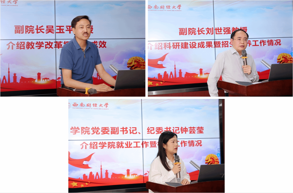 副院长吴玉平教授、副院长刘世强教授和学院党委副书记、纪委书记钟芸莹分别对学院教学改革探索、科研建设和招生培养工作、学生就业和校友工作情况进行了详细分享。