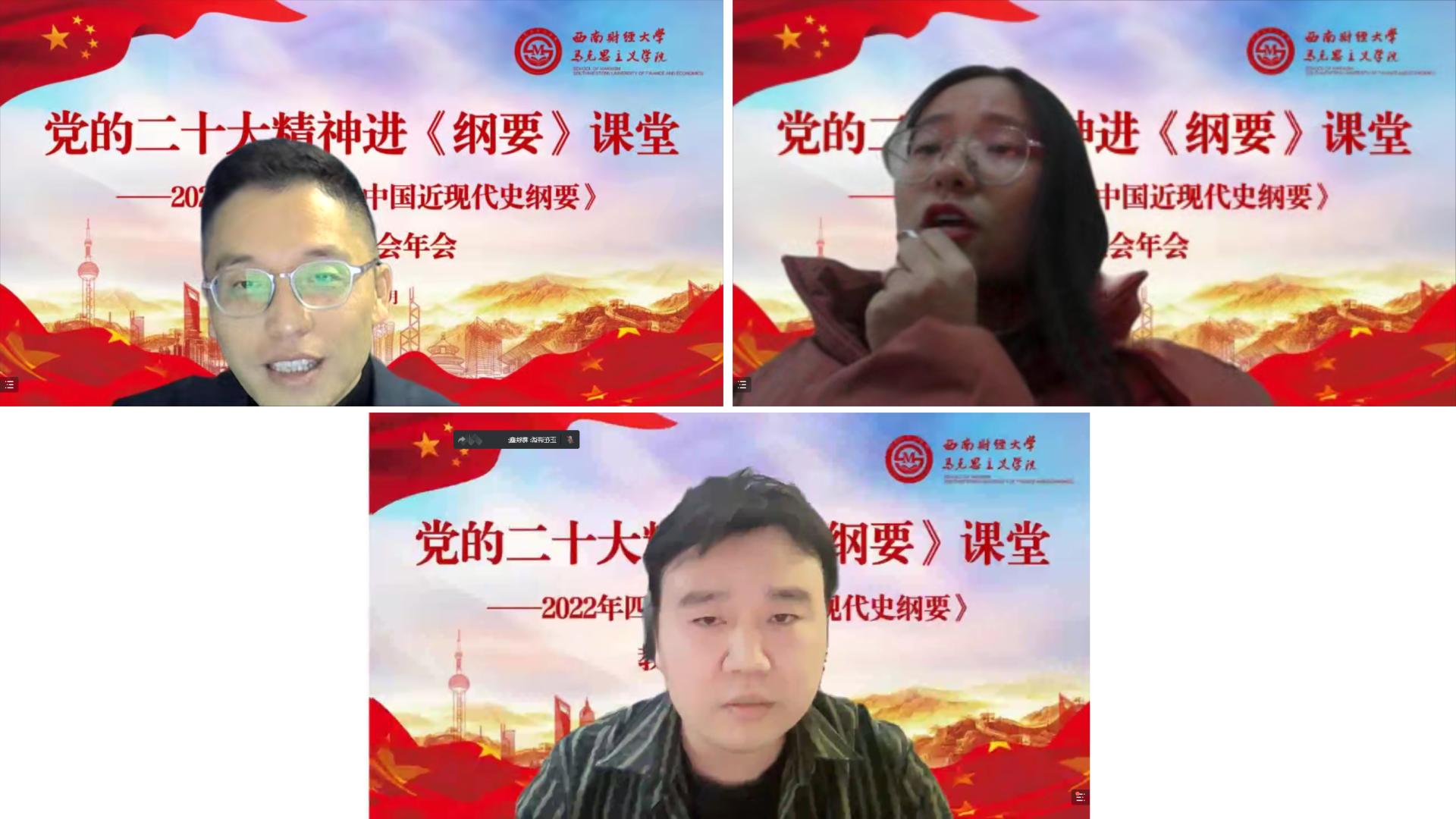 在《纲要》课教学经验交流阶段,四川大学5357cc拉斯维加斯吴国富副教授、西南交通大学5357cc拉斯维加斯曾淼副教授、绵阳师范学院5357cc拉斯维加斯韩晓娟教授、中国民用航空飞行学院5357cc拉斯维加斯段益副教授、拉斯维加斯官网5357cc拉斯维加斯郭文副教授围绕党的二十大精神融入《纲要》教学、高校思政课改革创新等内容作介绍与交流,对于进一步了解《纲要》课程建设的最新动态、提高教学的针对性和实效性起到了积极推动作用。拉斯维加斯官网5357cc拉斯维加斯副院长吴玉平教授主持教学经验交流阶段。