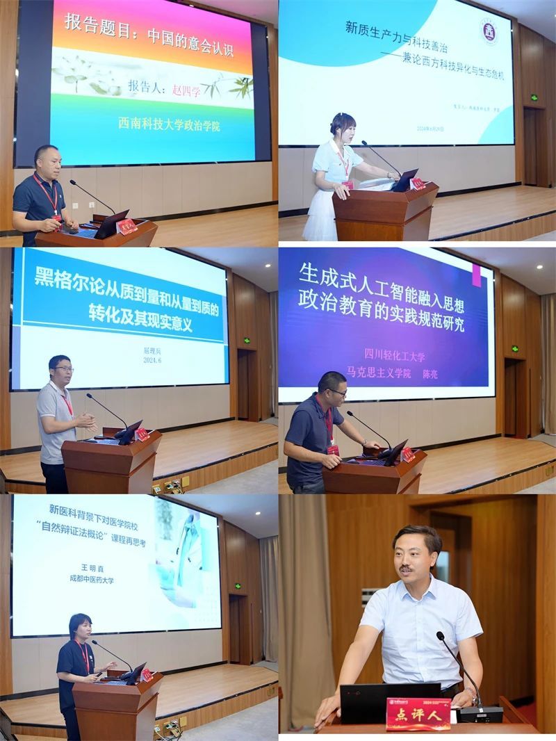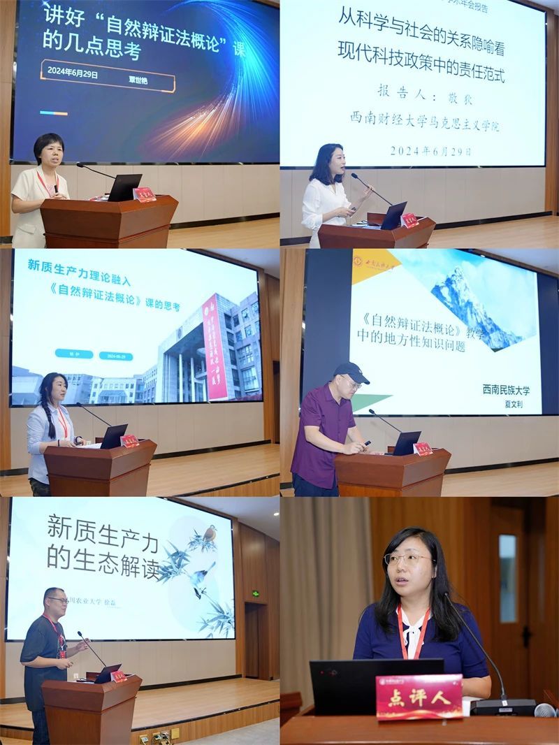 交流发言第一阶段,由成都信息工程大学5357cc拉斯维加斯院长丁小姗教授主持。西南交通大学覃世艳副教授、西南财经大学敬狄博士、西南石油大学杨伊博士、西南民族大学夏文利副教授、四川农业大学徐磊博士等主要围绕“新质生产力”和“自然辩证法”课程改革创新两大方面进行了深入交流。四川农业大学5357cc拉斯维加斯副院长邱高会做了点评。