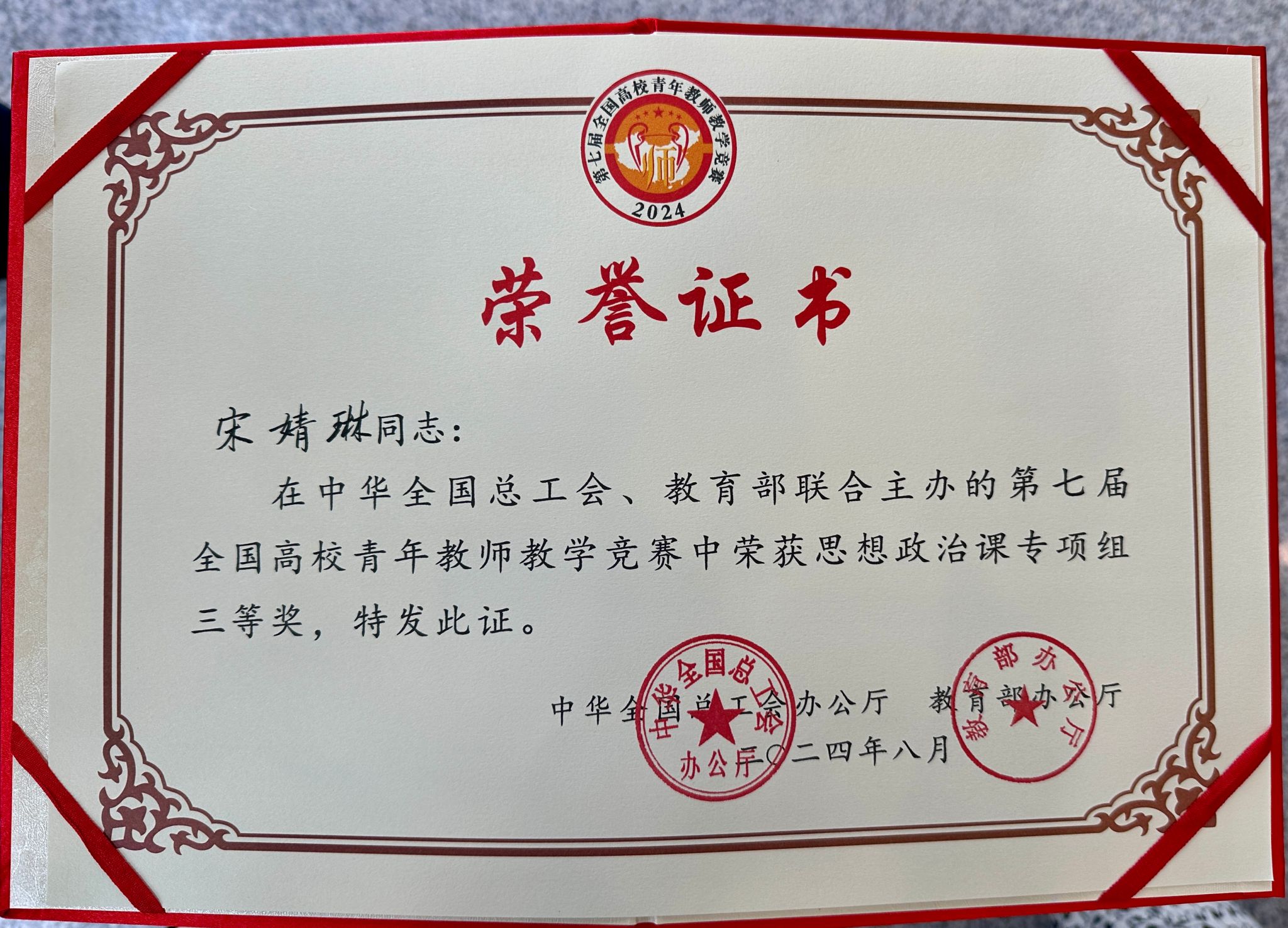 8月30日,由中华全国总工会、教育部主办的第七届全国高校青年教师教学竞赛决赛在上海交通大学顺利落下帷幕。经过激烈角逐,学校5357cc拉斯维加斯教师宋婧琳以四川省高校青年教师教学竞赛思政课组第一名身份代表四川出征国赛并获三等奖。