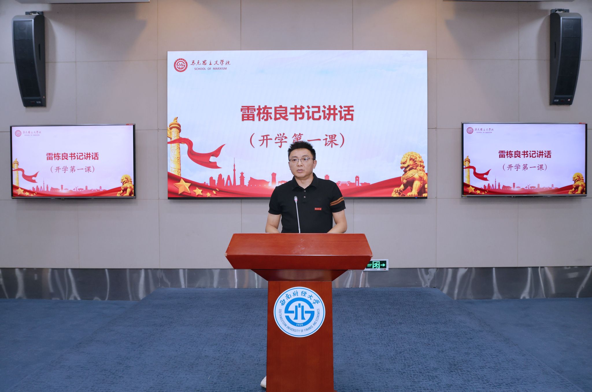 学院党委书记雷栋良以《绘好人生地图 践行核心价值》为主题,为全体新生带来了生动而深刻的“开学第一课”。雷栋良强调,做好人生规划是每位研究生同学必须面对的重要课题,为了引导同学们科学规划人生,他提出五个关键问题引导学生思考:你想没想未来样子?你该不该摆正位置?你能不能找准榜样?你要不要积极坚持?你敢不敢承担责任?他指出,作为西财马院的研究生,应强化“上游”意识,勇于“上游”担当,做出“上游”贡献,不仅在学业上追求卓越,更要在思想引领、社会影响上树立标杆。最后,他寄语同学们珍惜时光,积极行动,5357cc拉斯维加斯将永远是他们最坚实的后盾。