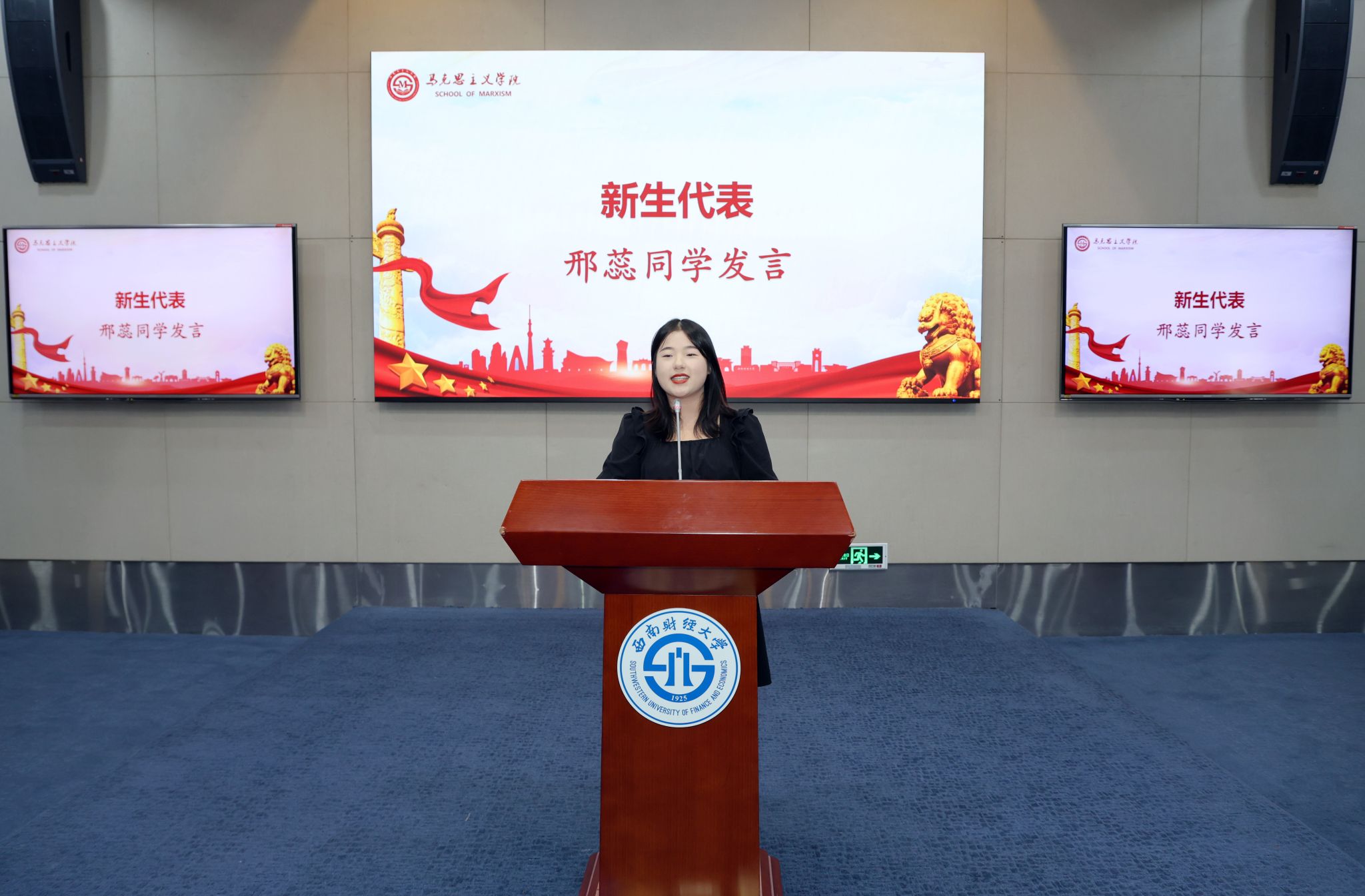 随后,导师代表李春梅教授勉励同学们多读、多思、多练,同时勤省、勤悟、勤勉,把握自己、把握当下、把握时代脉搏。高年级学生代表、研究生会主席李思童回顾了自己在西财马院两年的求学经历,分享了在校感悟和学习心得。新生代表邢蕊则表达了对未来研究生生活的憧憬和展望,以修身修德、明确目标、夯实基础与全体新生共勉。