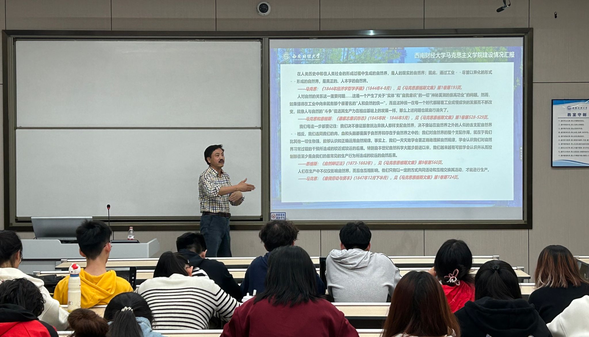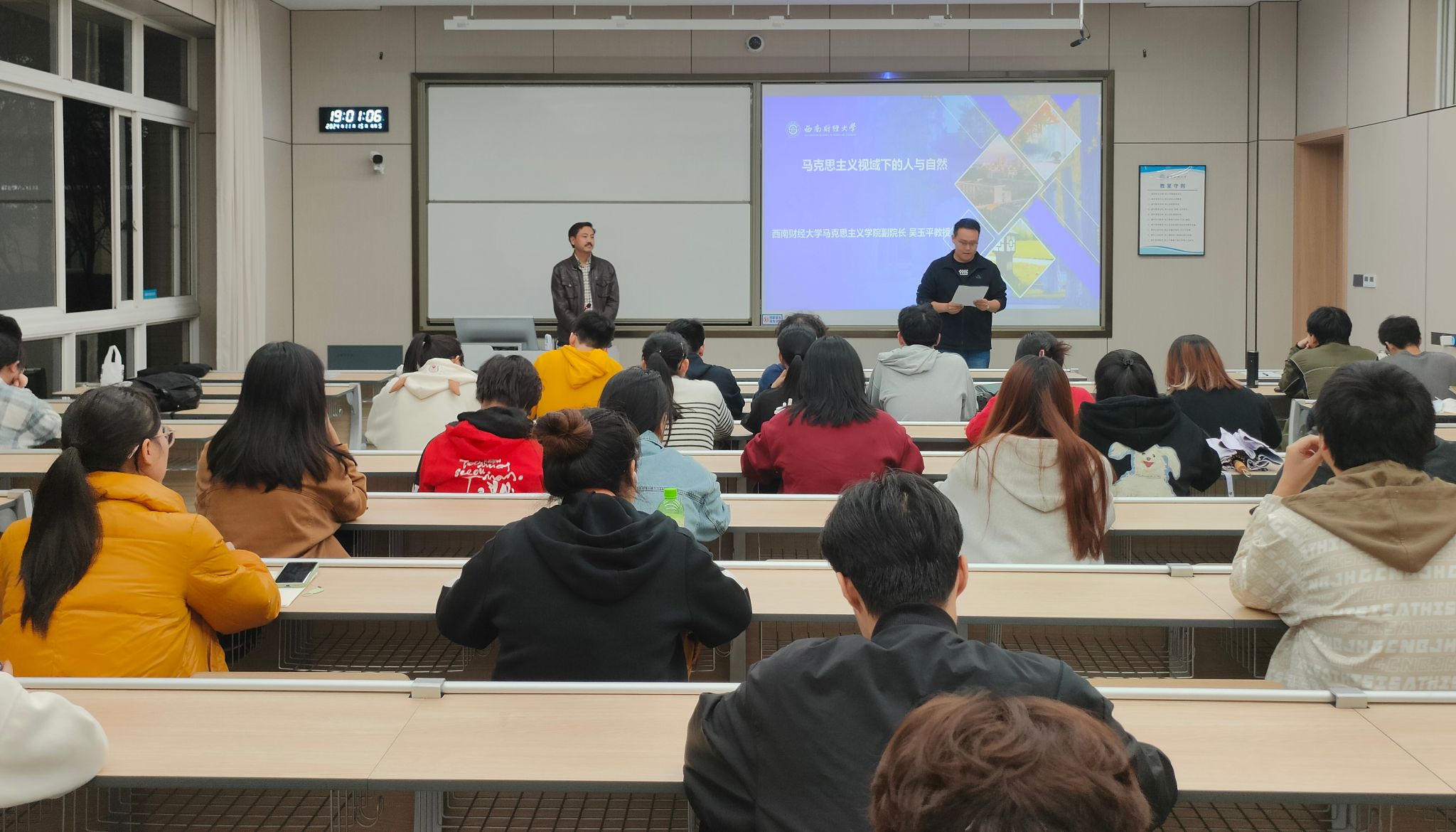 讲座以“马克思主义视域下的人与自然”为主题,围绕自然界的本质属性、自然界的客观规律、人与自然的关系等三个问题展开讲解。通过详细梳理《1844年经济学哲学手稿》《德意志意识形态》《雇佣劳动与资本》《资本论》《自然辩证法》《反杜林论》《社会主义从空想到科学的发展》《路德维希·费尔巴哈和德国古典哲学的终结》等一系列经典著作文本中有关自然、自然规律和人与自然关系的论述,为同学们提供了详实的文献素材和清晰的问题脉络。