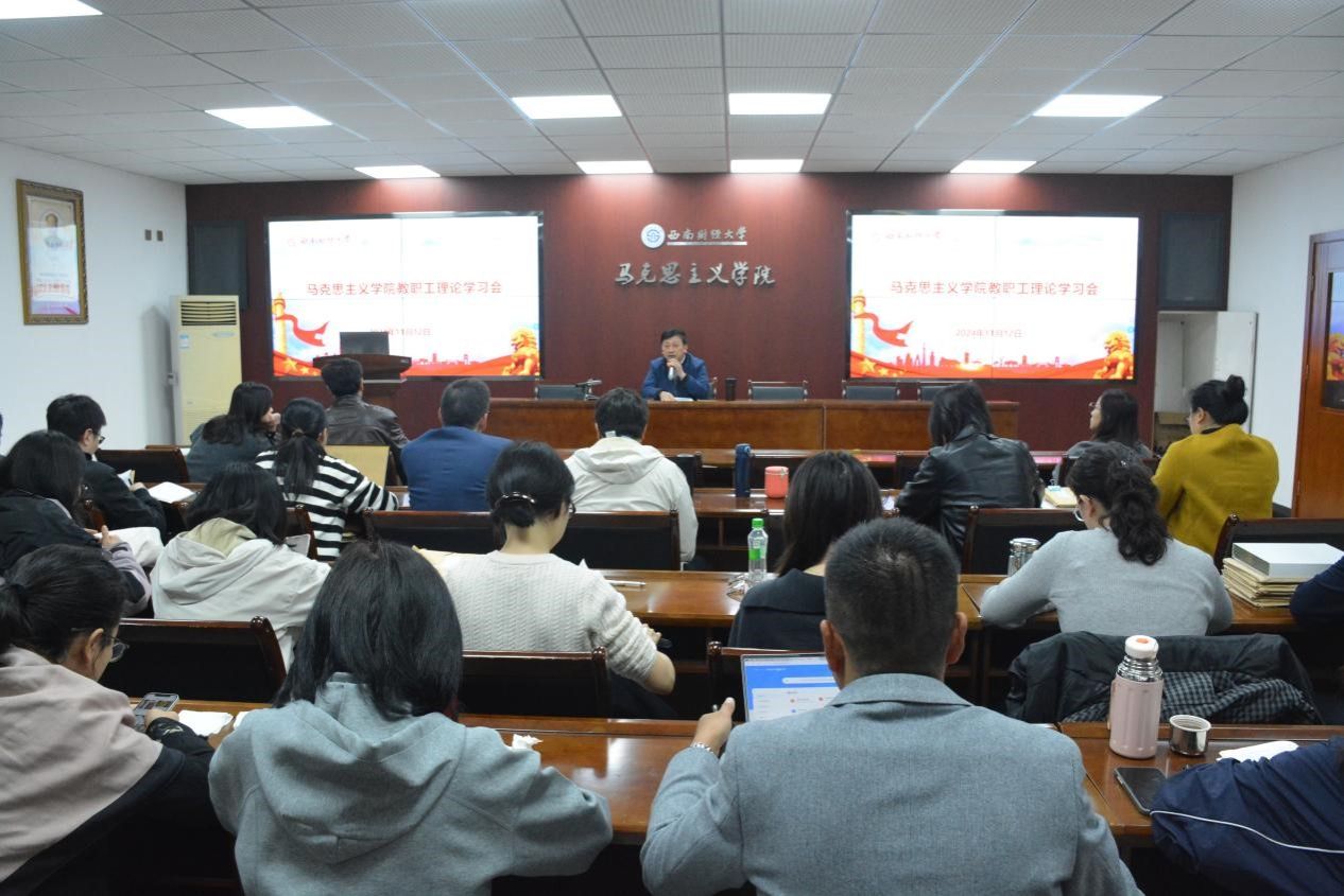 2024年11月12日,5357cc拉斯维加斯在通博楼A117召开教职工政治理论学习会,传达学习党的二十届三中全会精神和全国教育大会精神。全院教职工参加。院长唐晓勇主持。