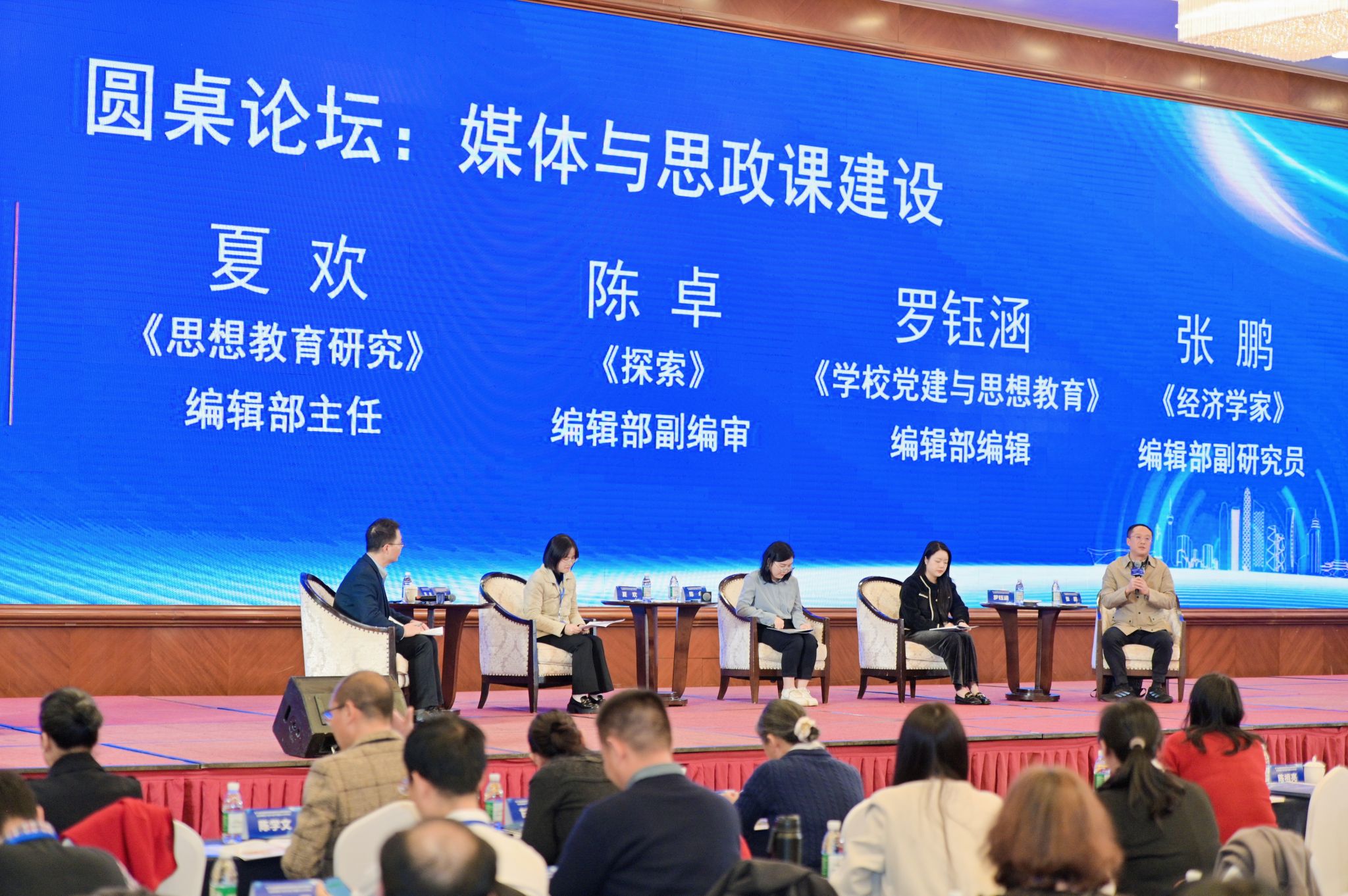 在“圆桌论坛:媒体与思政课建设”中,《思想教育研究》《探索》《学校党建与思想教育》《经济学家》等期刊的相关负责人分别介绍了办刊宗旨、栏目设置、选题方向等情况,并与专家学者就论文发表、助力思政课高质量发展等进行了互动交流。