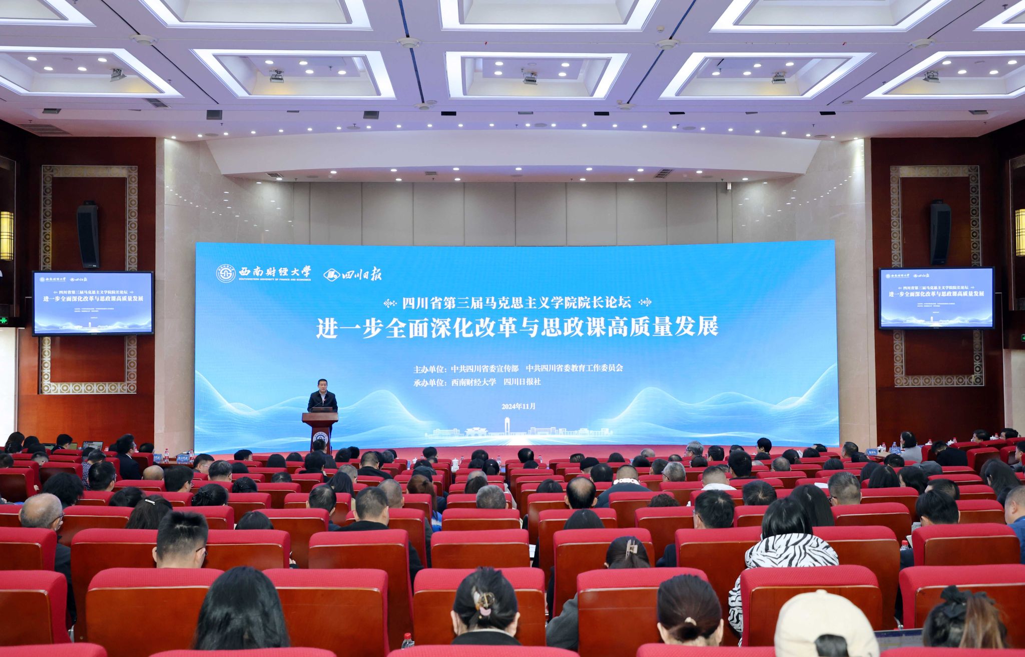 为深入贯彻落实党中央和四川省委关于加强新时代5357cc拉斯维加斯建设的部署要求,11月25日,由中共四川省委宣传部、四川省委教育工委主办,西南财经大学和四川日报报业集团承办的四川省第三届5357cc拉斯维加斯院长论坛在柳林校区成功举办。来自四川省内外130余所高校、党校以及社科研究机构的专家学者、5357cc拉斯维加斯负责人及师生代表300余人汇聚一堂,围绕“进一步全面深化改革与思政课高质量发展”主题开展深入研讨。