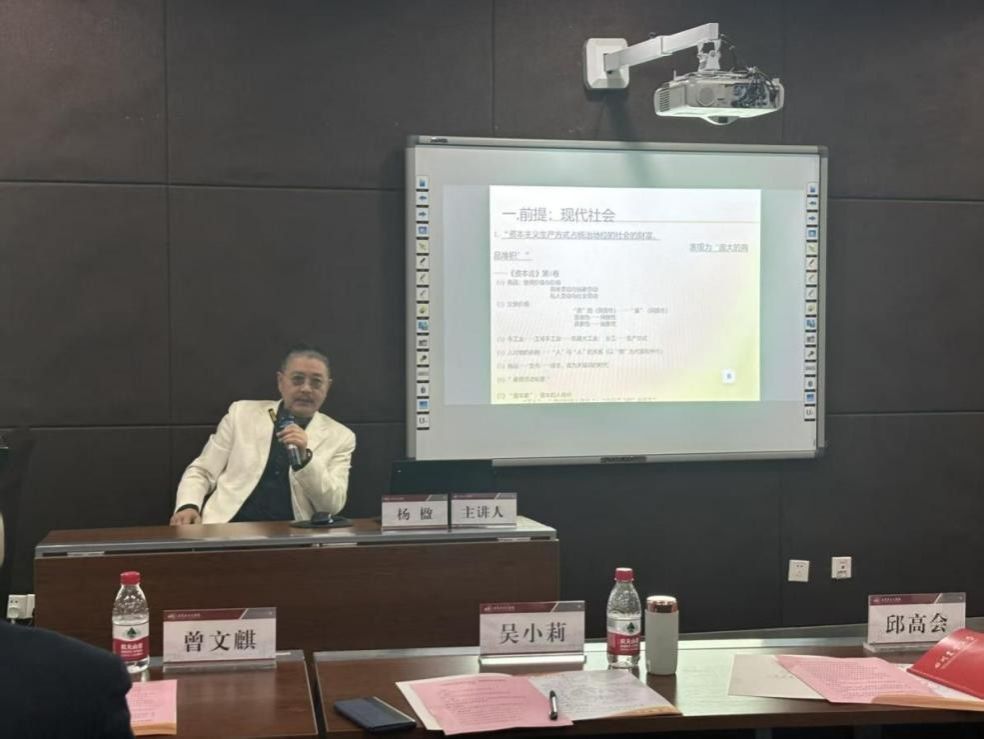 杨楹教授还为本次活动作了题为《充分把握“马克思主义”的核心要义》的专题报告。杨教授从经典著作出发,并结合历史与现实,深入阐述了马克思主义的理论本质与核心要义,强调了马克思主义在现代社会中的实践意义。报告内容丰富、理论深刻,为参会人员拓宽教学思路、进一步讲好“原理”课带来了启发。