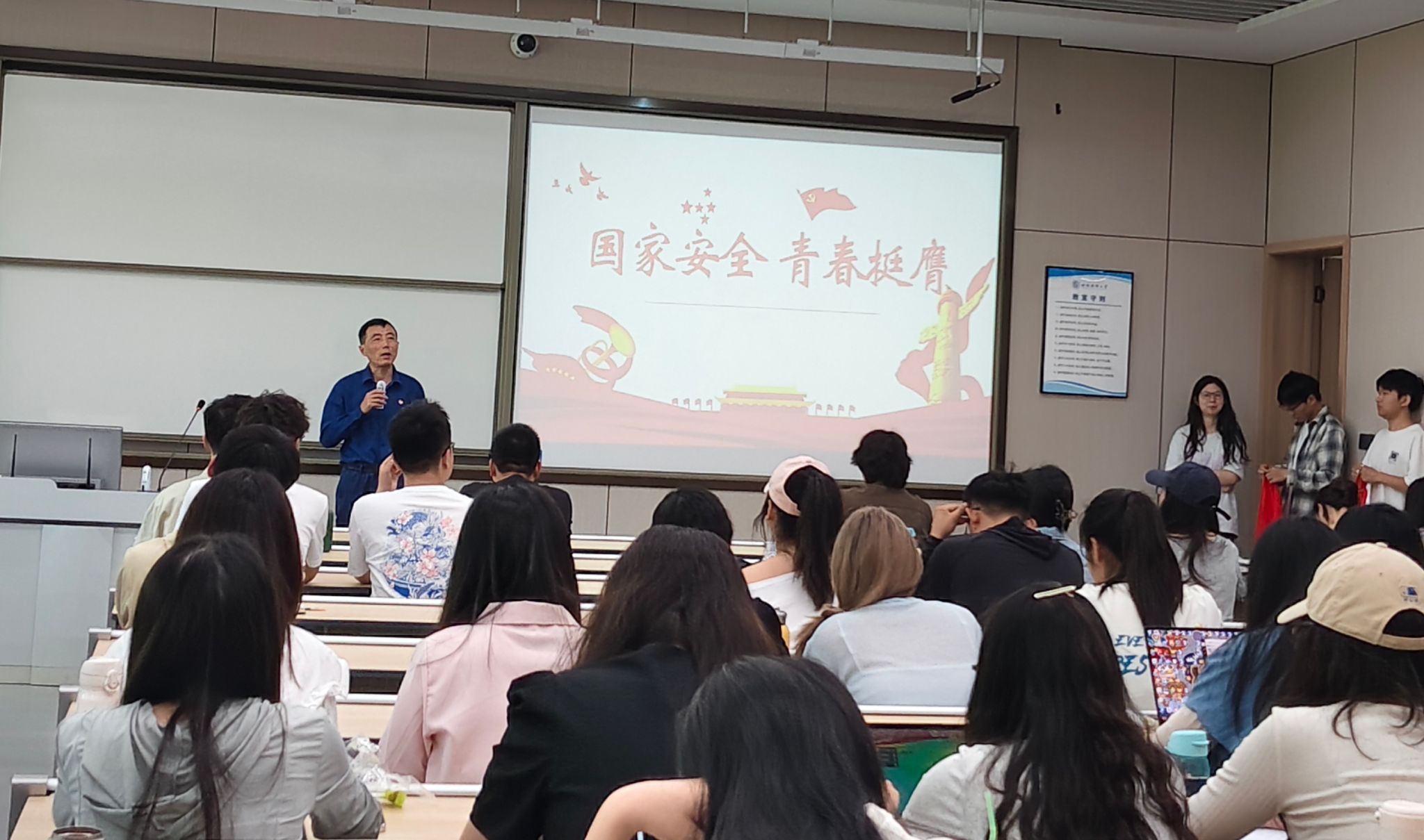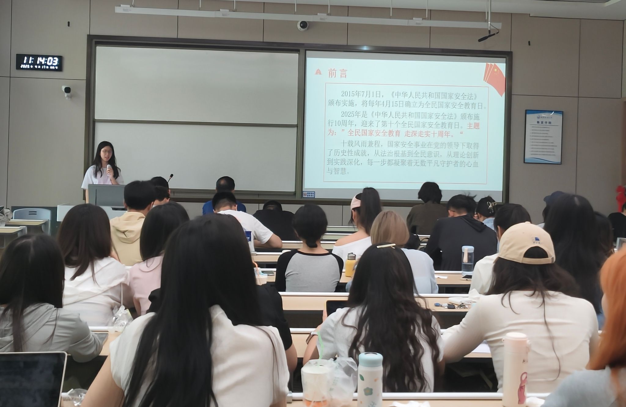 活动中,李瑶同学介绍了十年来在党的领导下国家安全取得了历史性成就,带领大家学习国家安全相关知识,开展了国家安全知识问答,并组织团员们观看了贯彻总体国家安全观专题教育片,激发共青团员捍卫国家安全的责任感与使命感。