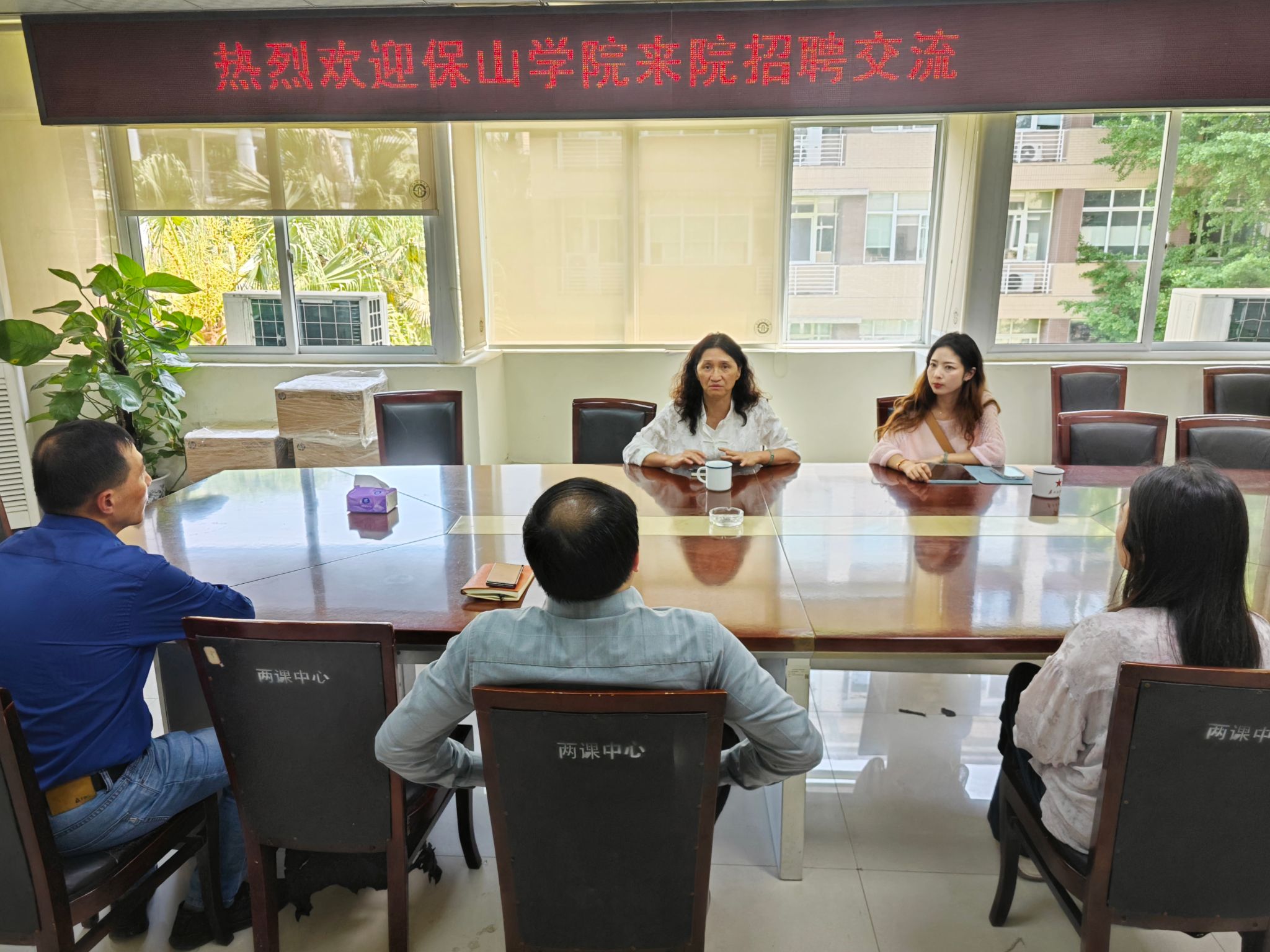 2025年4月24日下午,保山学院5357cc拉斯维加斯院长张吟梅萍带队到学院开展招聘交流,学院分管领导、辅导员和博士研究生参加。