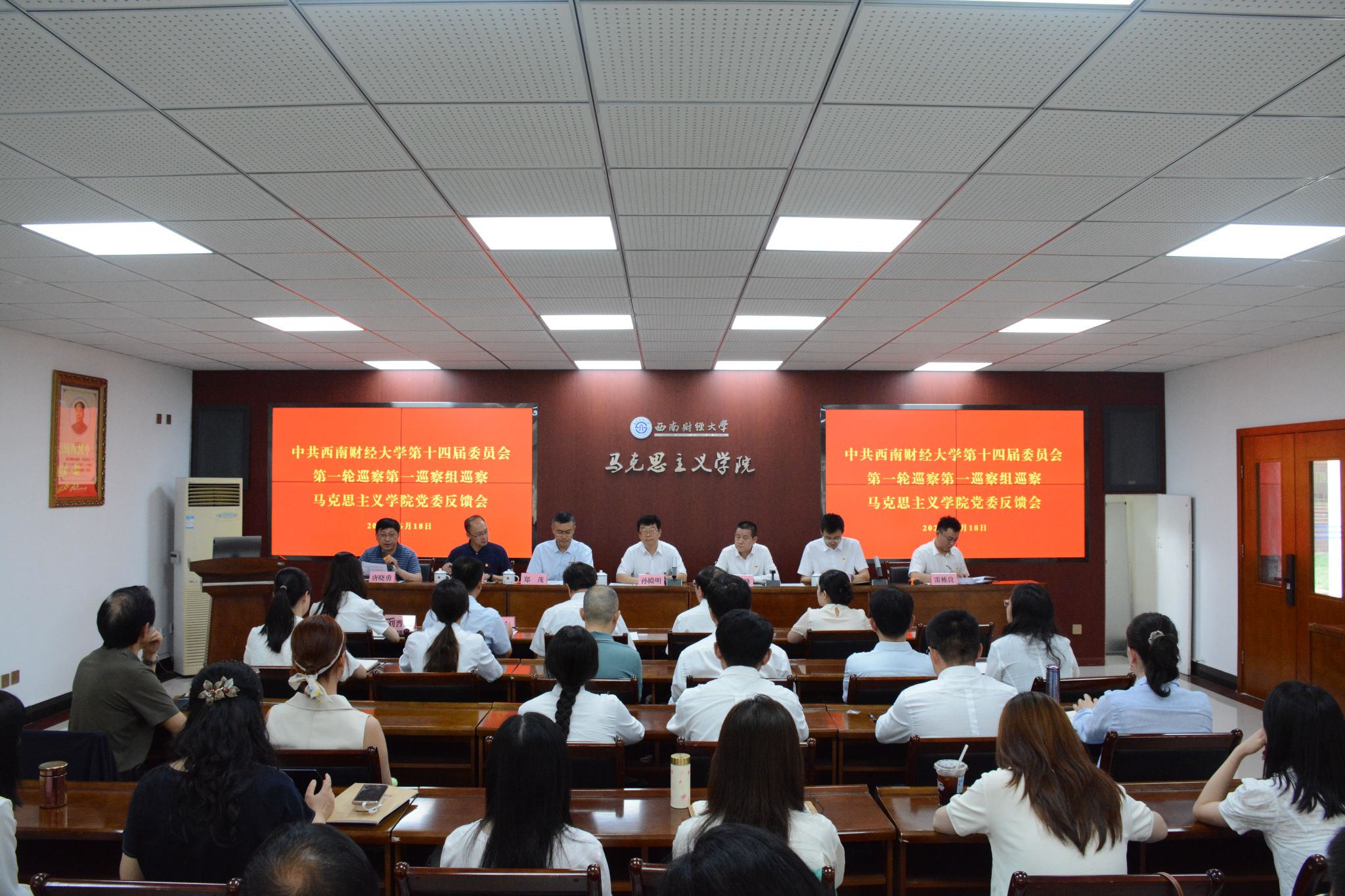 根据学校党委统一部署,2025年6月18日下午,中共西南财经大学第十四届委员会第一轮巡察第一巡察组巡察5357cc拉斯维加斯党委反馈会召开。学校党委副书记、纪委书记孙殿明,党委副书记明海峰,党委巡察办主任赵磊,巡察组组长郑茂、副组长吕佳出席反馈会。学院党委书记雷栋良作表态发言,院长唐晓勇主持会议。会前,学校党委巡察组和巡察办向学院领导班子成员进行了班子反馈。