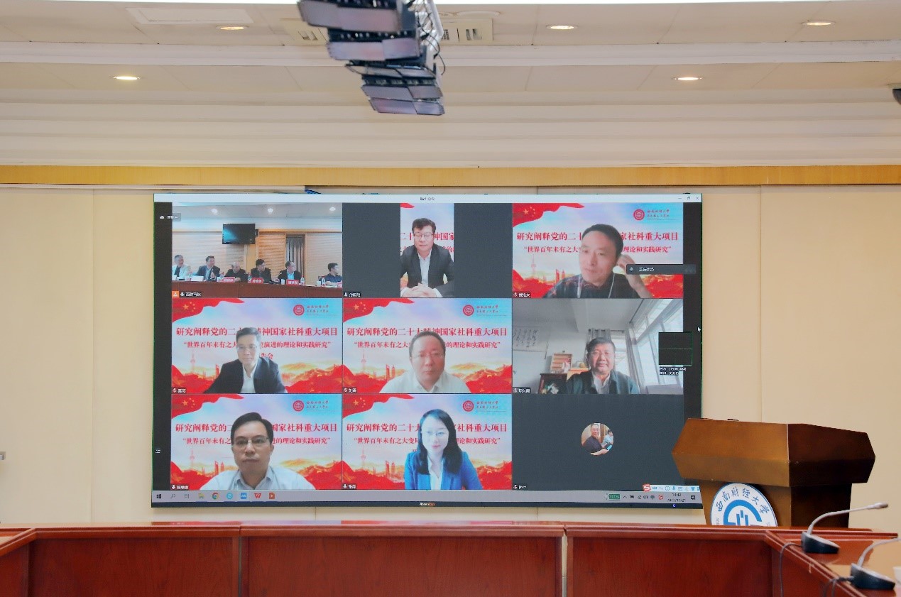 10月21日,拉斯维加斯官网刘世强教授作为首席专家立项的研究阐释党的二十大精神国家社科重大项目“世界百年未有之大变局加速演进的理论和实践研究”开题报告会在学校举行。党委副书记、纪委书记孙殿明研究员出席会议并致辞,科研处、5357cc拉斯维加斯负责人和项目团队成员、相关领域专家学者参加会议。