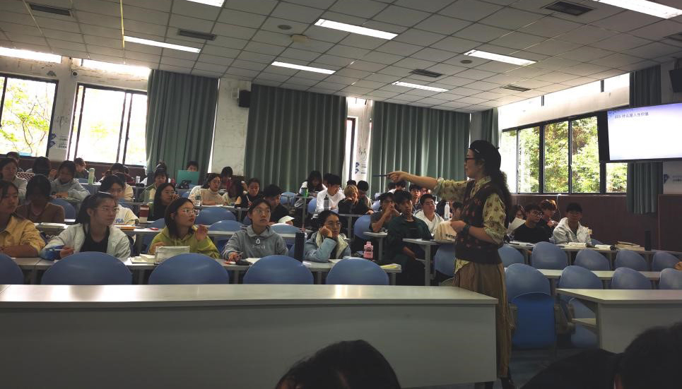 此次观摩课由谭亚莉老师主讲,讲授的主题是“领悟人生真谛,把握人生方向”。课堂上,谭亚莉老师围绕“人是什么”、“人生”内涵以及“什么样的人生值得活”、价值和人生价值等问题展开讲解。首先,通过提问的方式引导学生回顾“人是什么”的问题,运用案例深刻揭示人的社会性,从哲学社会科学的高度分析人为什么是具有超越性的存在、“人”为什么自己赋予自己存在的意义、人为什么是社会性的存在。其次,科学阐释“人生”是自然生命体和社会生命体的有机统一。谭老师巧用证严法师和张桂梅老师的鲜活人生案例引导学生思考“什么样的人生值得活”。最后,引导学生运用既有学科知识和哲学思维来剖析什么是价值和人生价值。