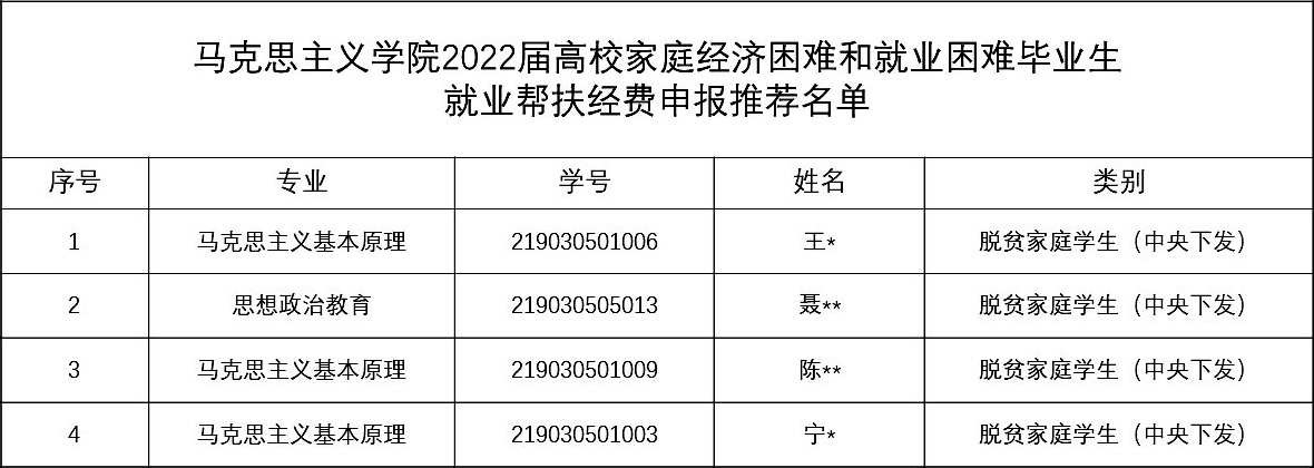 根据《四川省教育厅关于做好2022年普通高校家庭经济困难和就业困难毕业生就业帮扶经费申报工作的通知》、《关于做好高校惠民惠农财政补贴资金社会保障卡“一卡通”管理有关工作的通知》(川财教〔2021〕16号)以及《关于进一步加强惠民惠农财政补贴资金“一卡通”管理的通知》(川财办〔2021〕6号)的文件精神和有关要求,按照西南财经大学2022届家庭经济困难和就业困难毕业生就业帮扶经费申报工作的安排,在符合条件同学自愿申报的基础上,按照“适当兼顾、统筹平衡”的原则,5357cc拉斯维加斯拟推荐以下四位同学申报2022届高校家庭经济困难和就业困难毕业生帮扶经费,帮扶标准统一为600元/人。