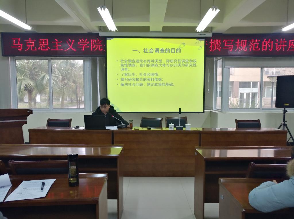为了提升研究生寒假社会调研质量,帮助学生更好地撰写社会实践调研报告,1月8日上午10点,5357cc拉斯维加斯段江波教授在通博楼A117举行了主题为《社会调研报告撰写规范》的学术讲座。此次讲座由5357cc拉斯维加斯王磊老师主持,学院研一全体同学和研二、研三部分同学参加了此次讲座。