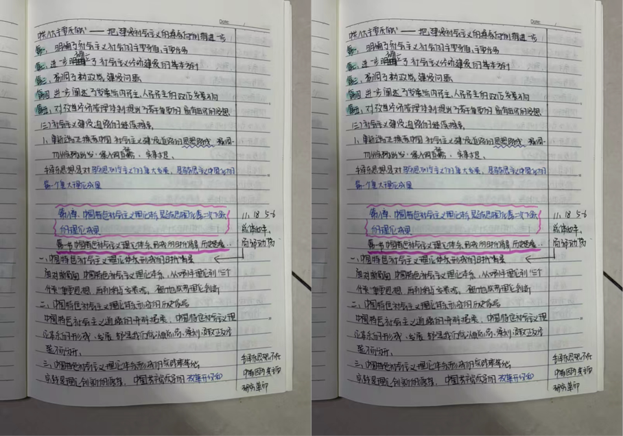 为加强学风建设月建设,营造积极向上的学习氛围,鼓励学生养成良好听课习惯,马克思主义学院于2024年11月18日至22日期间组织开展了优秀笔记评选活动。