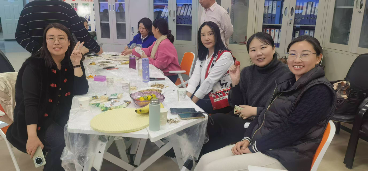 随后,包饺子环节将活动氛围推向高潮,为本次联欢画上圆满句号。大家围坐一起,和面、擀皮、包馅,一双双巧手将团圆的期盼和新年的祝福包进饺子里。大家边包边聊,从工作日常谈到生活趣事,教室中飘着饺子馅的香气,也满溢着“家”的温馨。