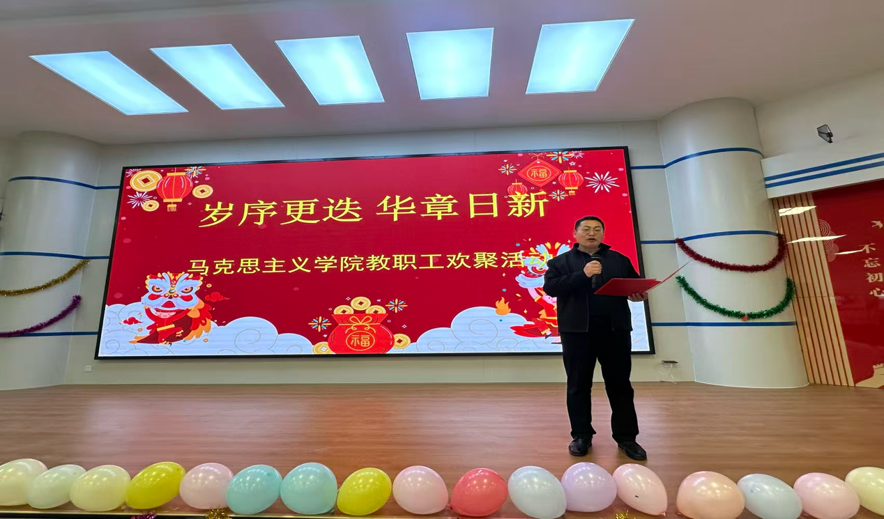 冬意渐浓情更暖,辞旧迎新乐满堂。2025年12月26日,马克思主义学院于崇仁楼五楼智慧思政教室举办元旦教职工联欢活动,全院教职工欢聚一堂,在温馨欢乐的氛围中迎接2026年的到来。活动开始前,马克思主义学院党总支副书记宁德安代表学院向全体教职工致以亲切问候和节日祝福,并希望通过活动进一步增进同事情谊、凝聚集体力量。现场洋溢着浓浓的节日氛围与集体温情。