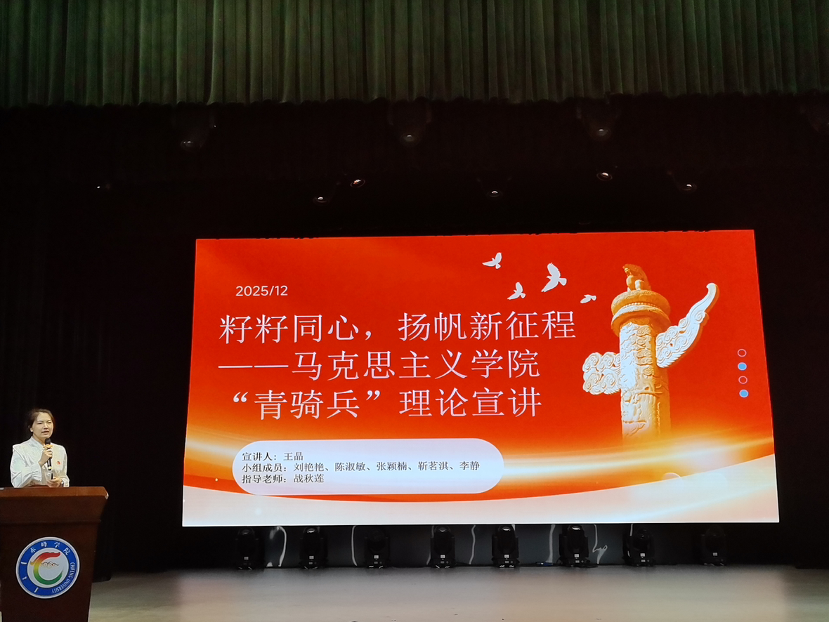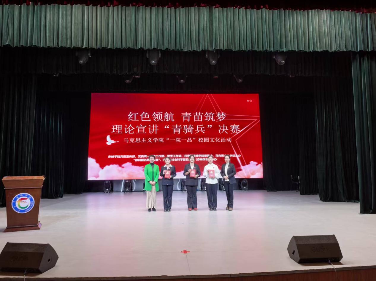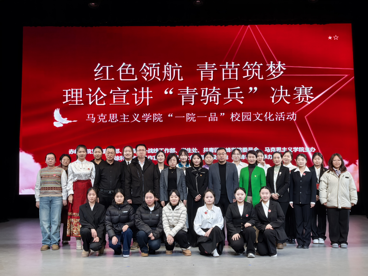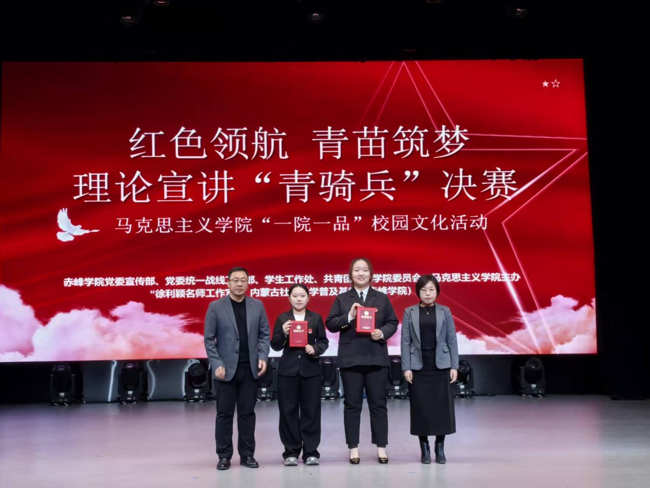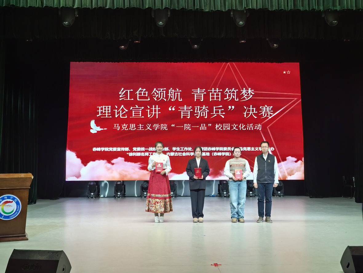 2025年12月12日,由beat365官方网站党委宣传部、党委统一战线工作部、学生工作处、共青团beat365官方网站委员会、马克思主义学院主办,“徐利颖名师工作室”、内蒙古社会科学普及基地(beat365官方网站)承办的“一院一品”校园文化活动“红色领航,青苗筑梦”理论宣讲“青骑兵”决赛在beat365官方网站大剧场举行。赤峰市委宣传部讲师团团长杲凡力,beat365官方网站工会主席赵俊峰,共青团beat365官方网站委员会书记王艳丽,学生工作处副处长王楠,马克思主义学院院长徐利颖共同担任评委,马克思主义学院领导班子、团学老师以及学校近500名学生共同参与活动。