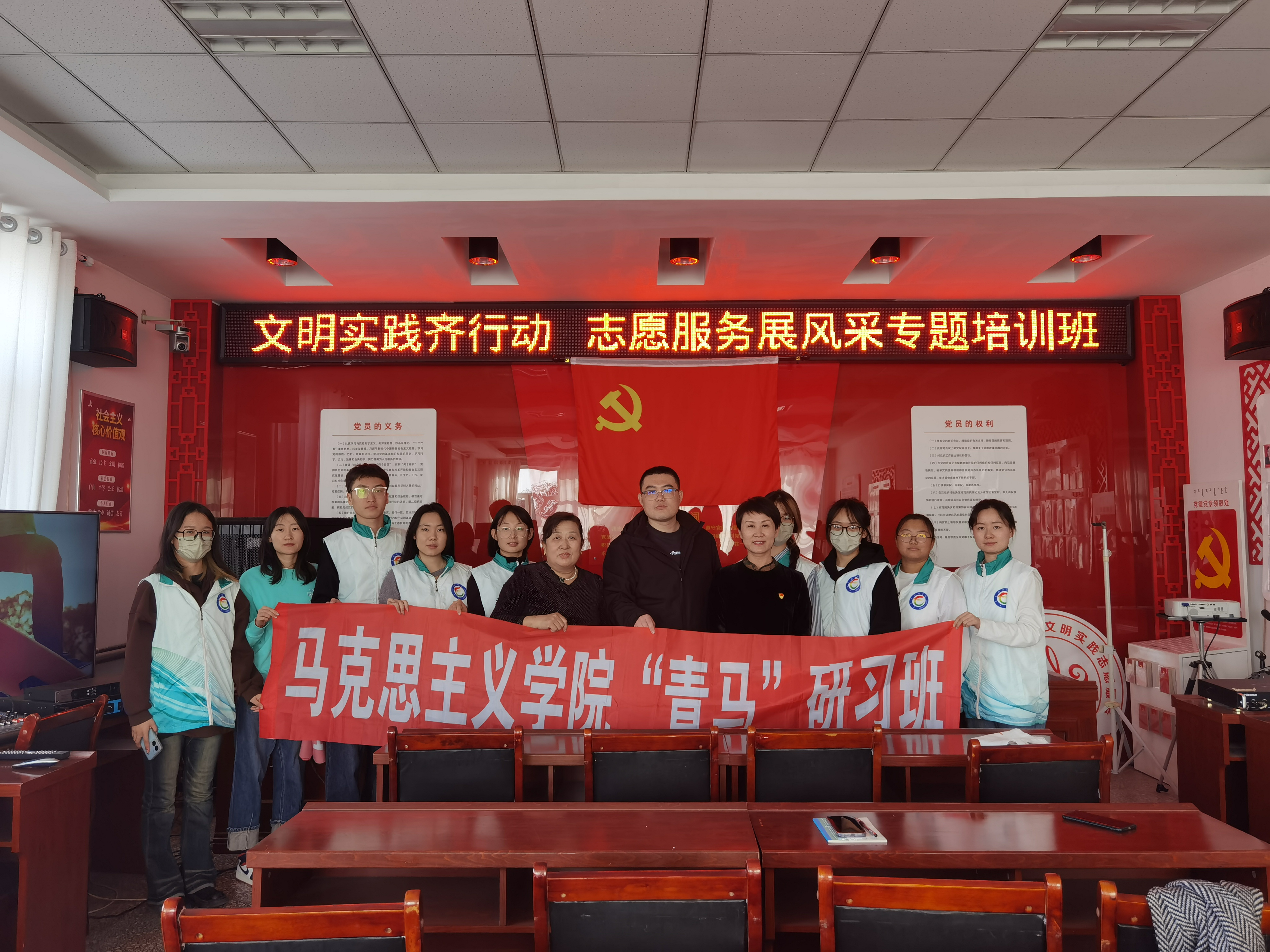 为深入开展“感党恩、听党话、跟党走”主题教育活动,推动主题教育走深走实,2023年12月5日马克思主义学院党总支书记徐利颖、团总支负责人刘宇婷带领青马班部分学员组成志愿服务队伍,赴赤峰市红庙子镇东南营子村开展主题宣讲。