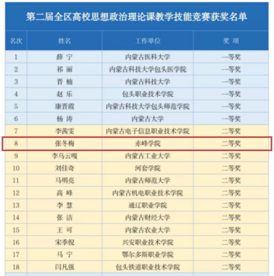 我院教师张冬梅获得第二届全区高校思想政治理论课教学技能竞赛二等奖