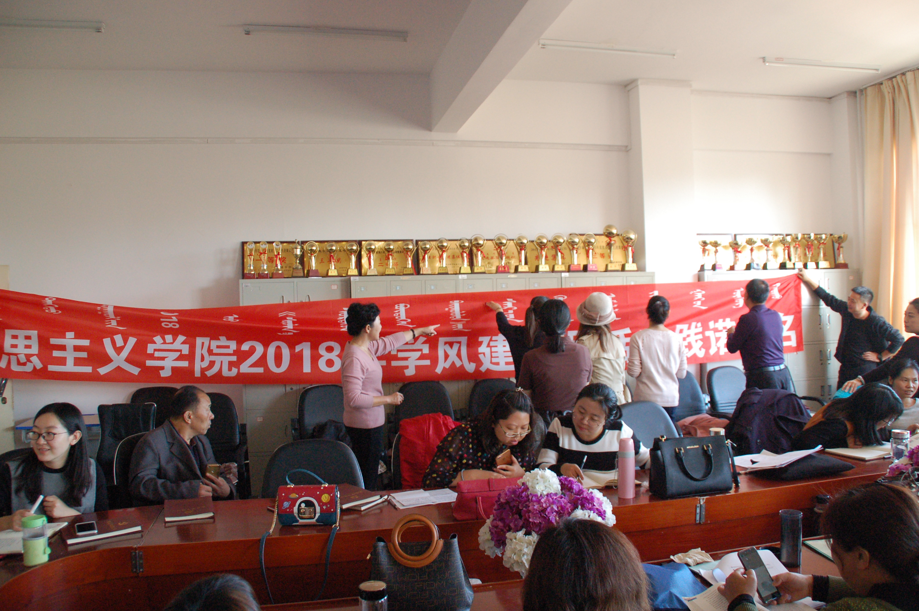 2018年10月24日下午,马克思主义学院在崇学楼212会议室举行“2018学风建设月”践诺签名活动,马克思主义学院全体教职工及学生参加活动。